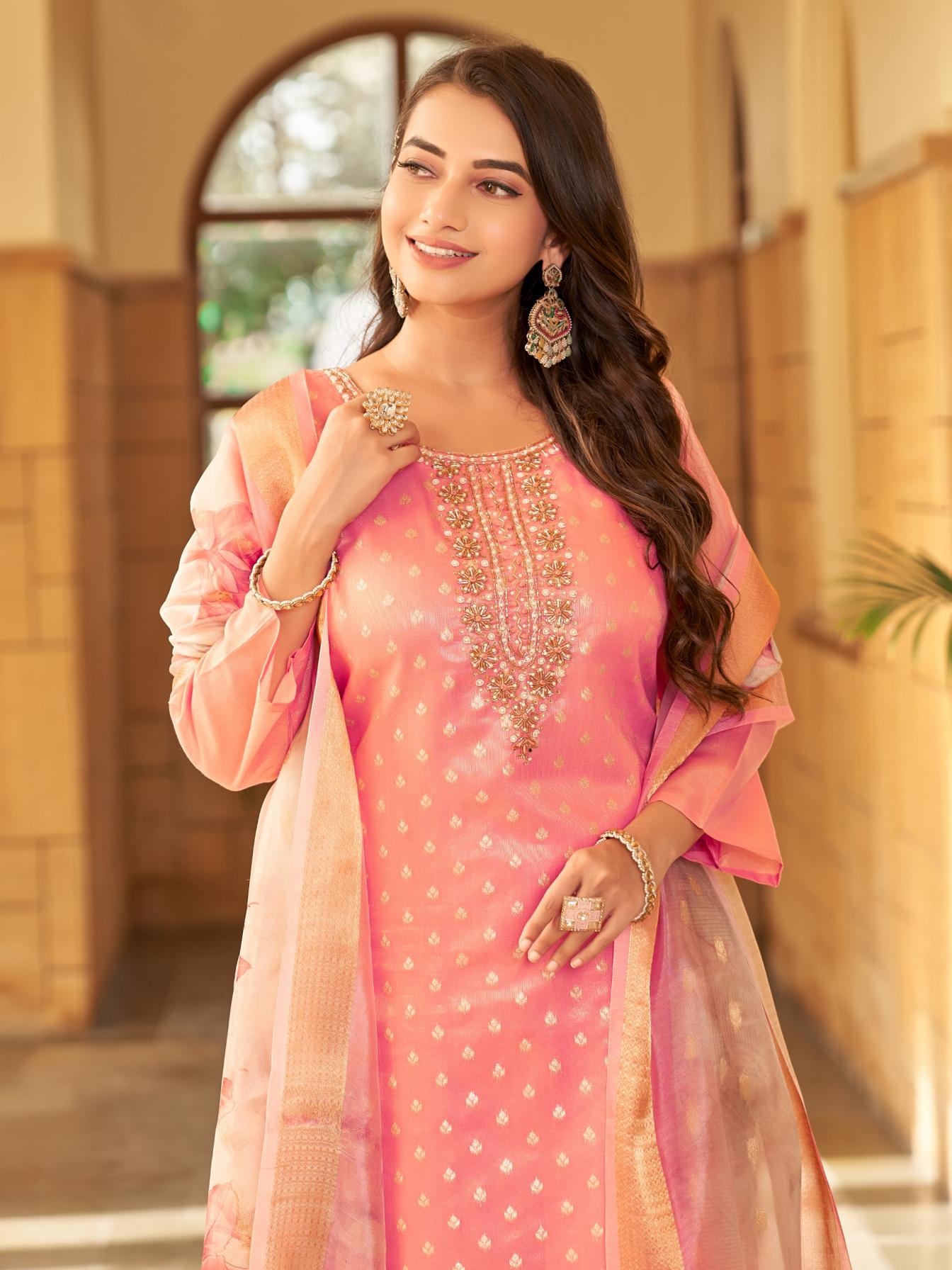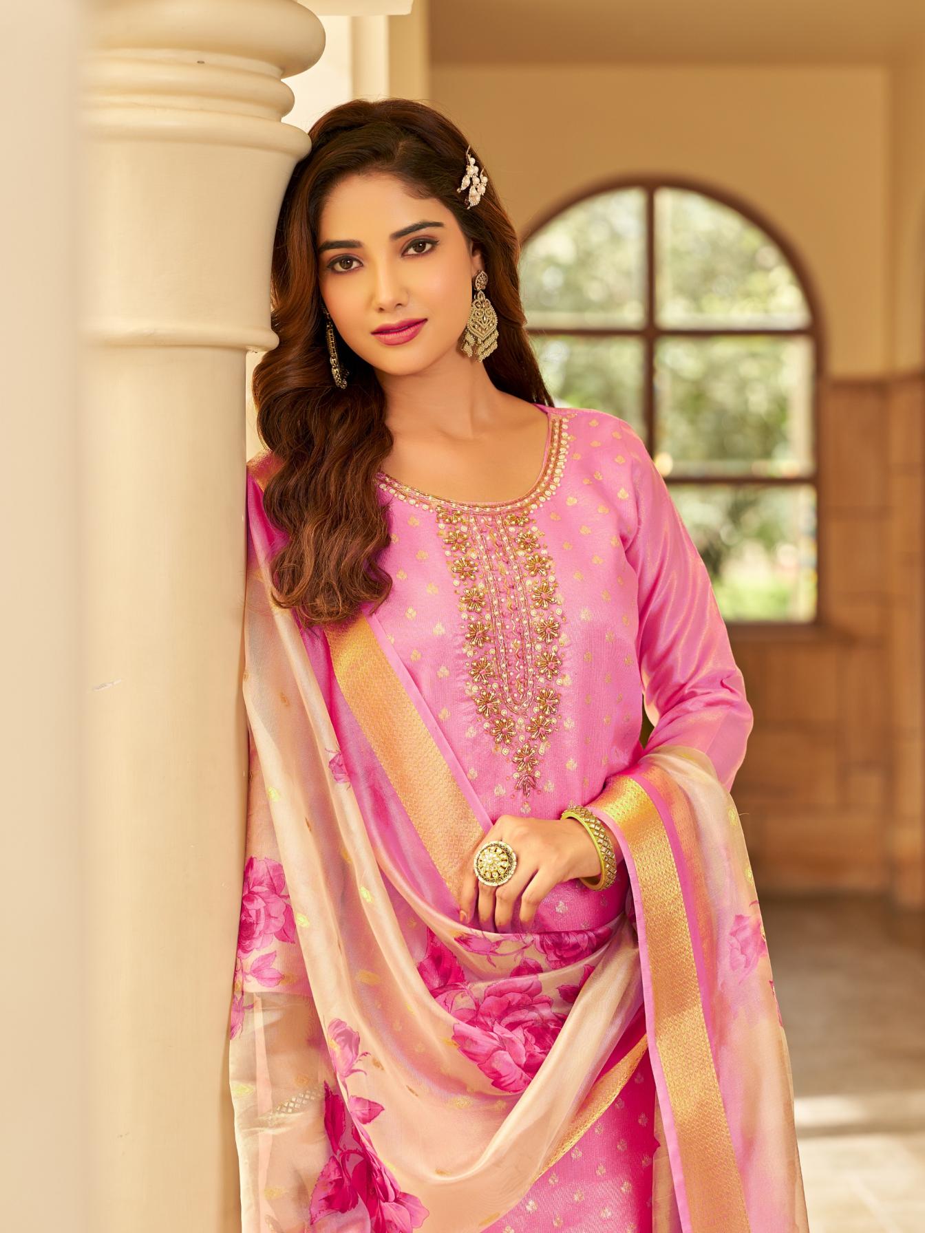 aanchi sunidhi fully stitch jacquard gorgeous look 3pcs dress