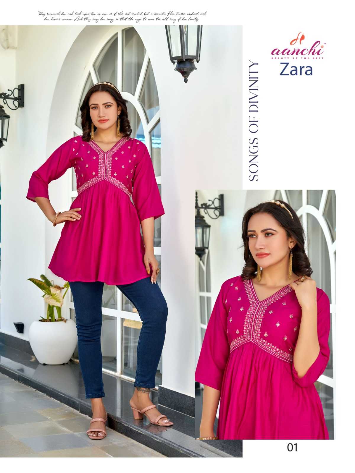 🔅Aanchi Kurtis🔅 Catalogue name: ZARA ⭐Details: 👗Fabrics 👚Pattern- 🎗Size - M(19) L(20) XL(21)XXL(23) RATE :375/- |