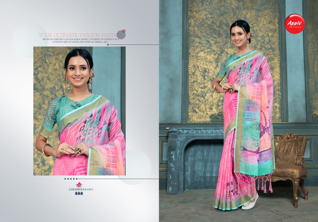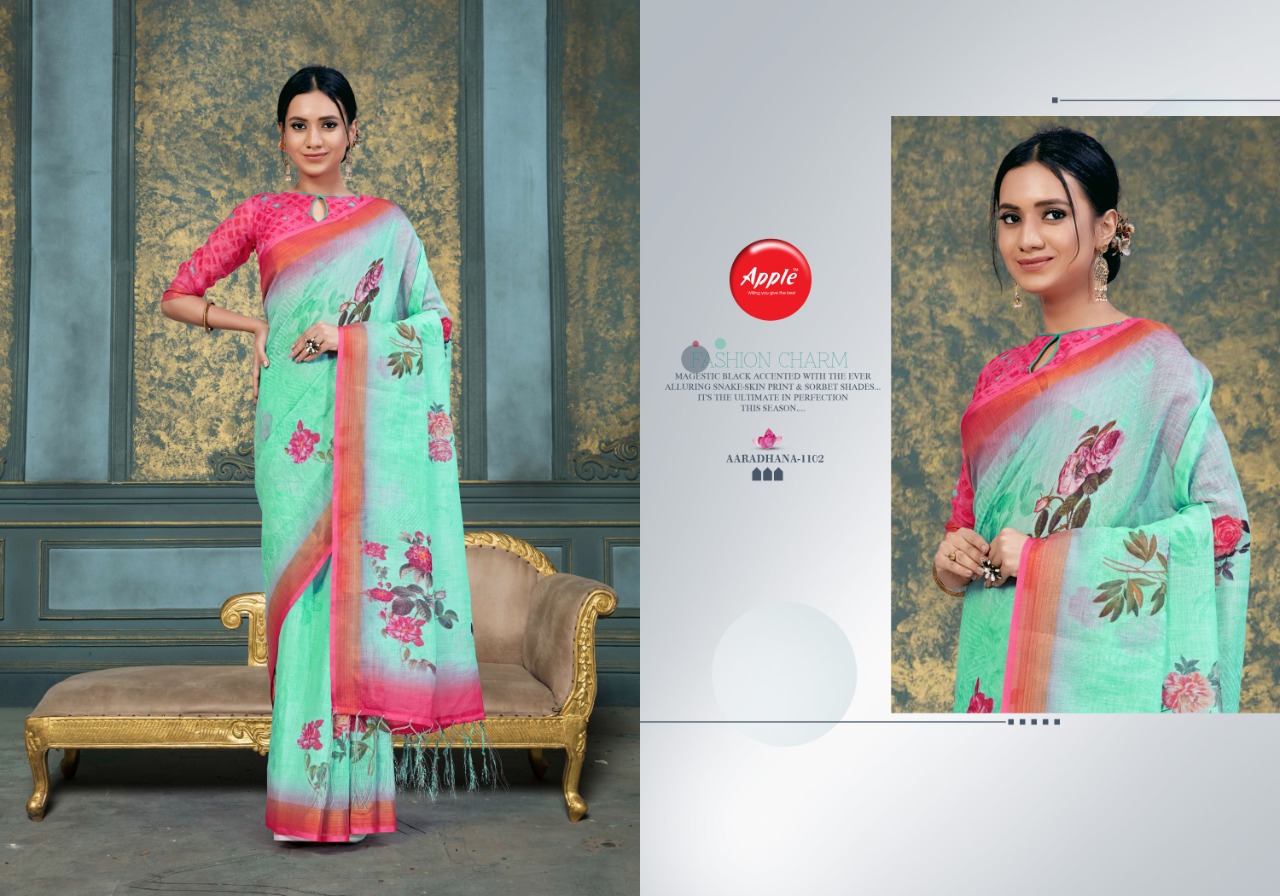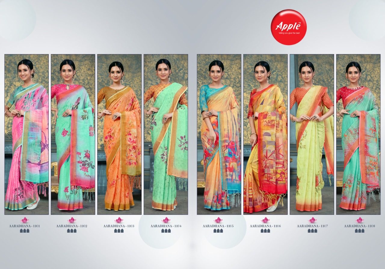 Aaradhana Vol 11 By Apple Pure Linen Digital Print Charming Look Saree Seller