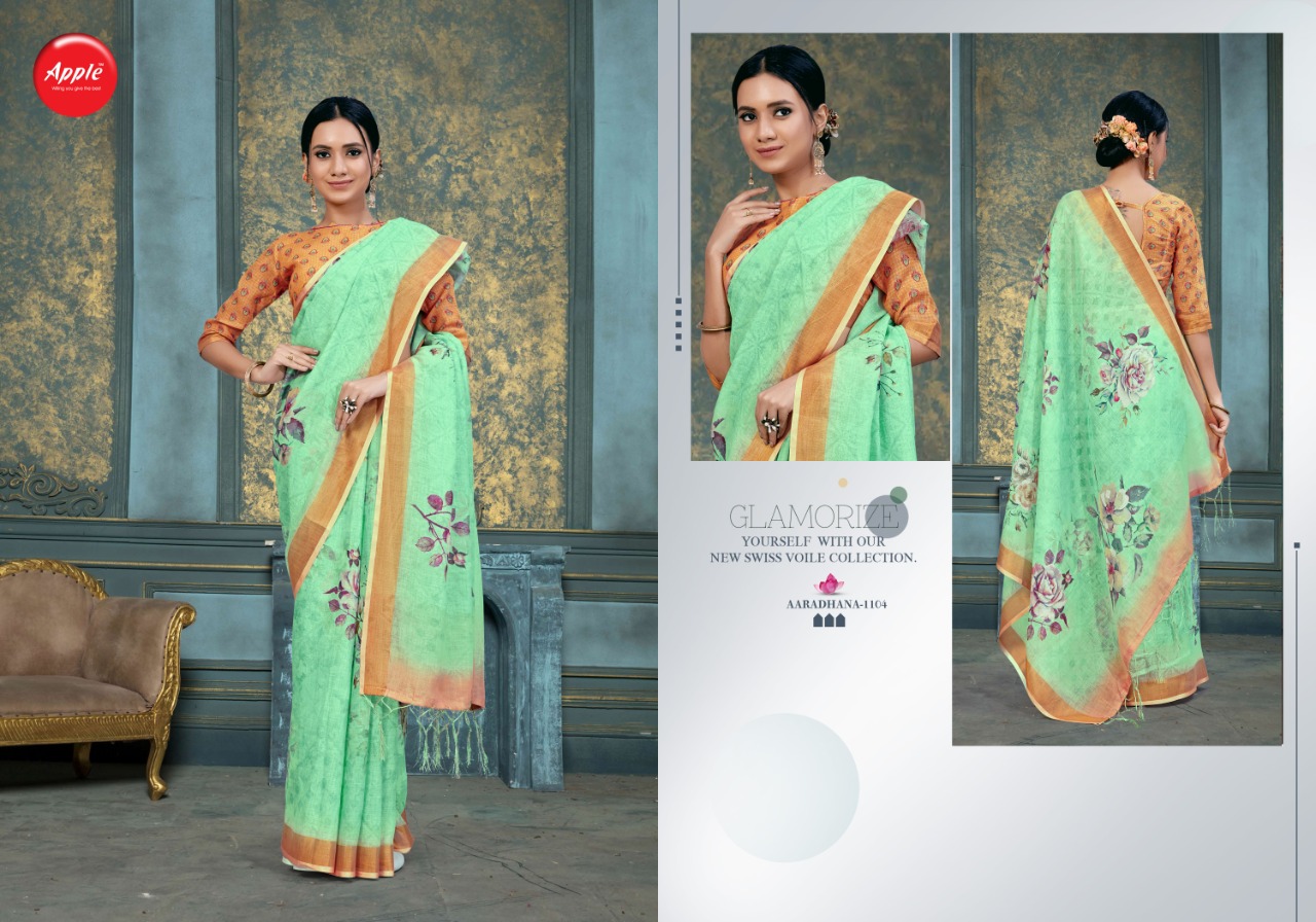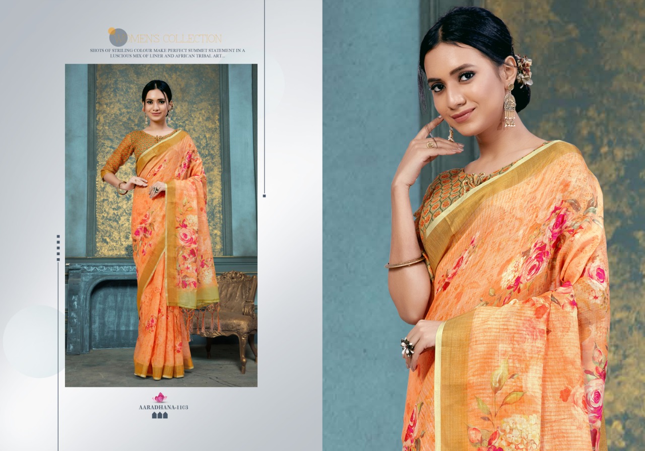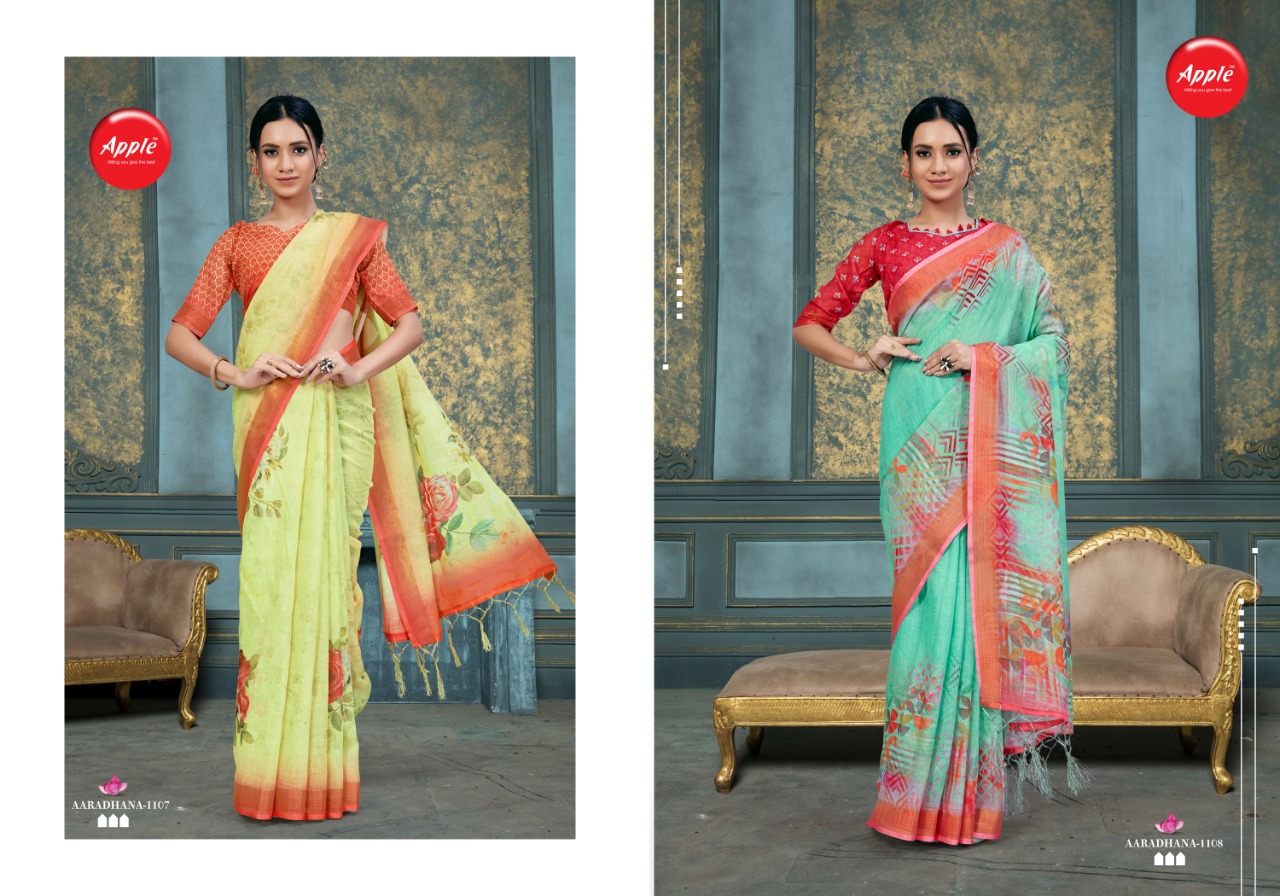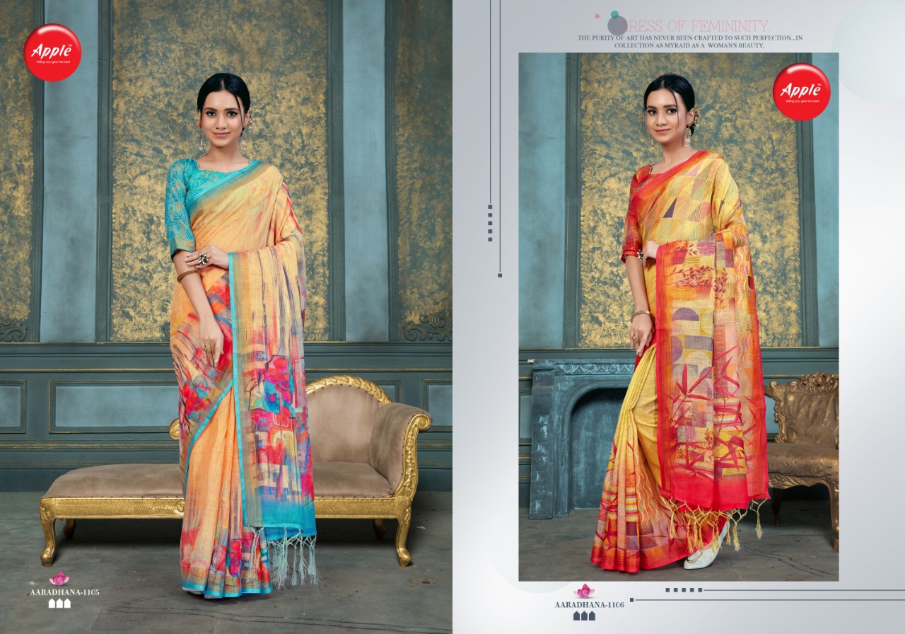 Aaradhana Vol 11 By Apple Pure Linen Digital Print Charming Look Saree Seller