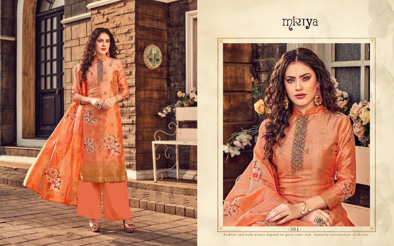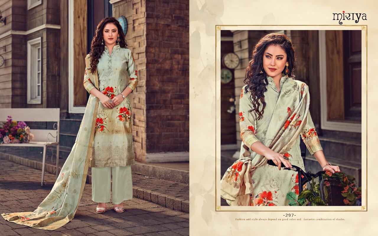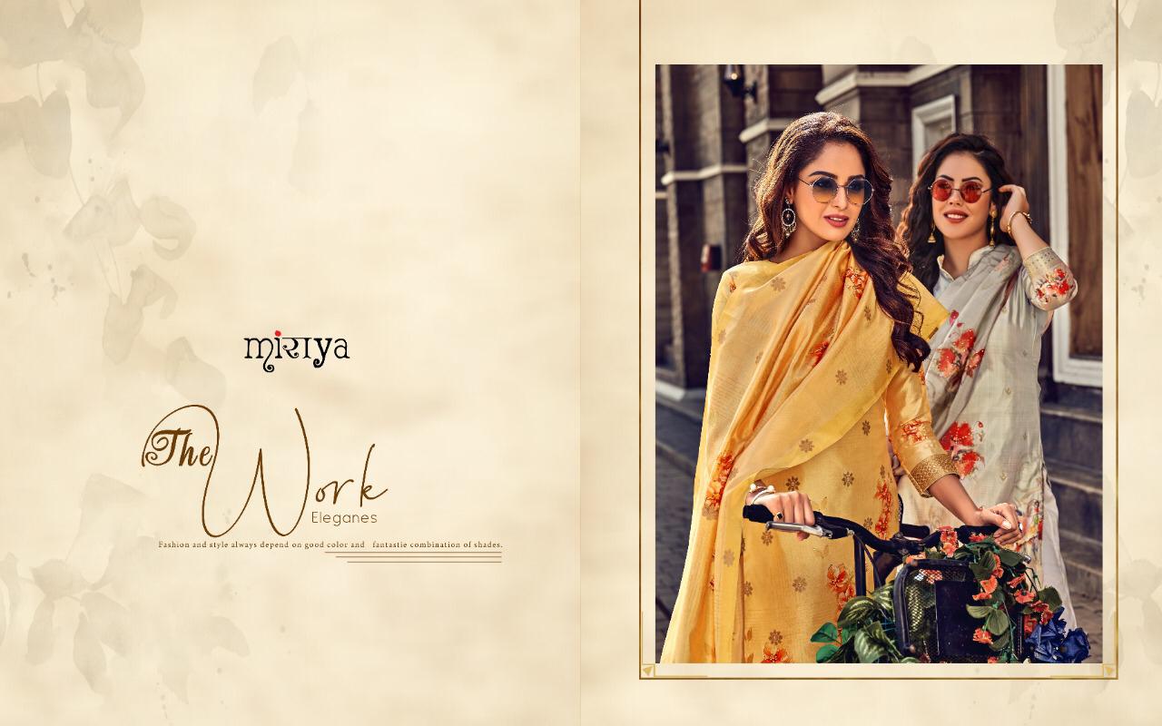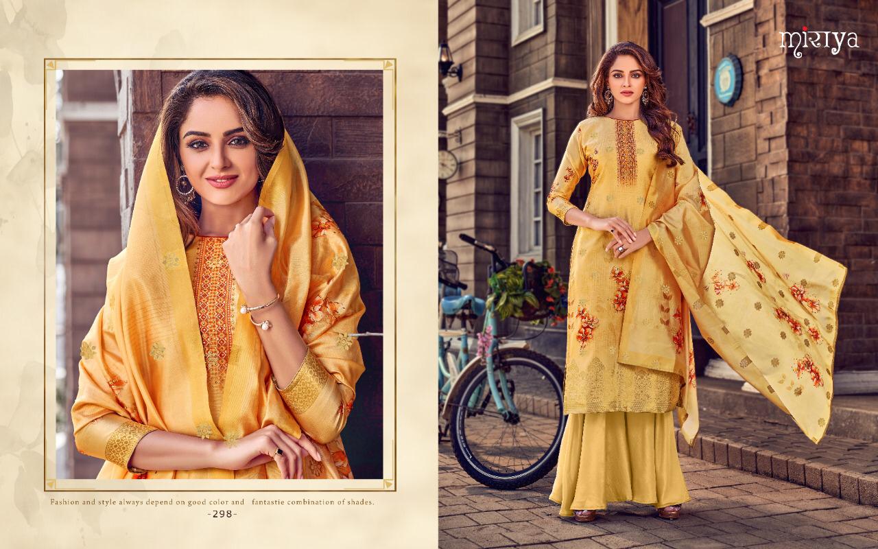 MIRAYA vol-14 Banarsi jecard series Top- Banarsi jecard with dijital print with handwork Bottom- Dull santoon Dupata-banarsi Jecard with dijital print with handwork Total design - 8 Price- 1199/- Dispatch in 4-5 days Limited stock |