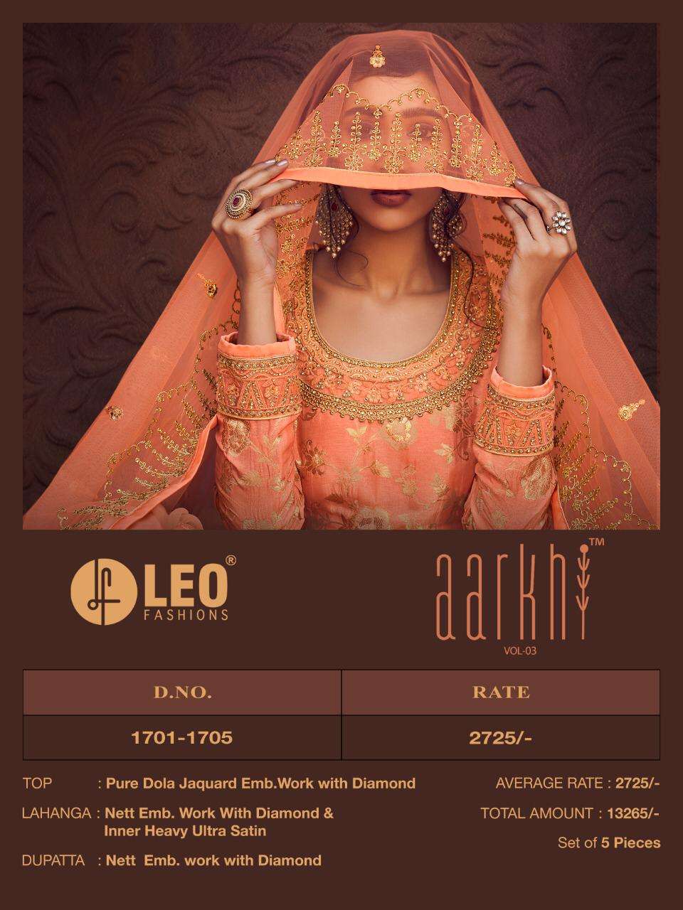 aarkh vol 3 by leo fashion dola jacquard lehenga style suits supplier