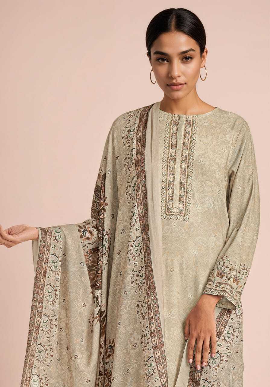 SAHIBA ITRANA TOP - STAPLE TWILL DIGITAL PRINT WITH HAND WORK BOTTOM - STAPLE TWILL DUPATTA - PASHMINA TWILL DIGITAL PRINTED DUPATTA RATE: |