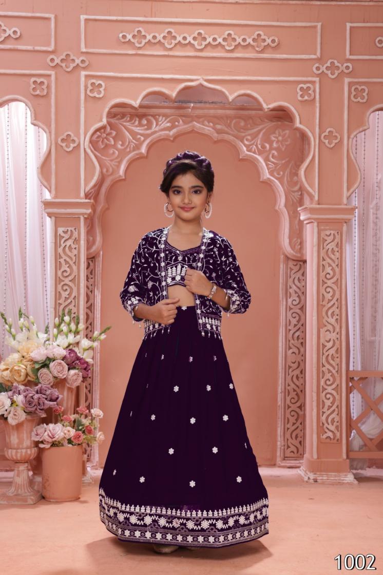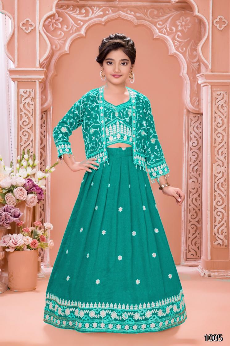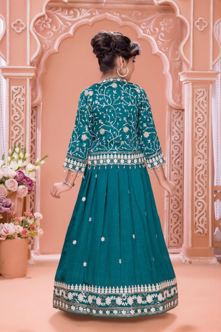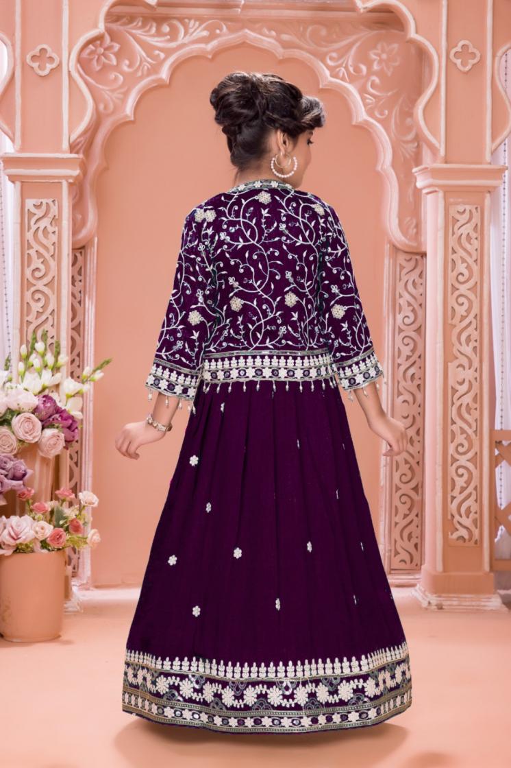 aarvi designer vichitra silk kids embroidered lehenga choli online