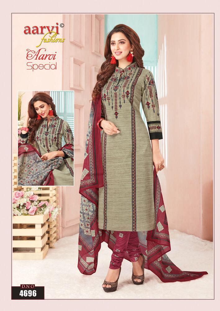 AARVI FASHION Launches âÂÂAarvi special vol 11â 100 % cotton Unstitched Top :- cotton cambric 2:50 mtr Salwar :- cotton cambric 2:00mtr Dupatta :- cotton mulmul 2:35 mtr Rate :-399+GST 16 pc catalog |