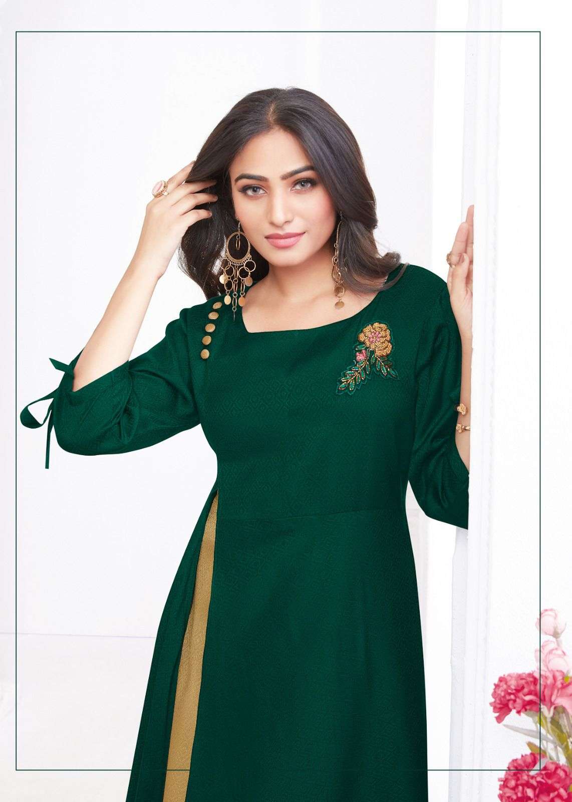 AARVI FASHIONS We are please to launch stylish Kurtis for your style statement. “Manya vol 27” Fabric - Rayon Rate :- 580 |