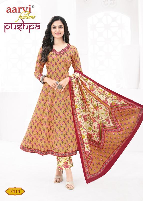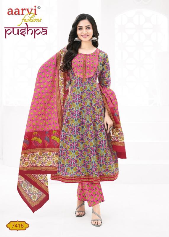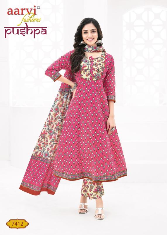 aarvi fashion pushpa vol 1 cotton fully stitch casual anarkali 3pcs dress
