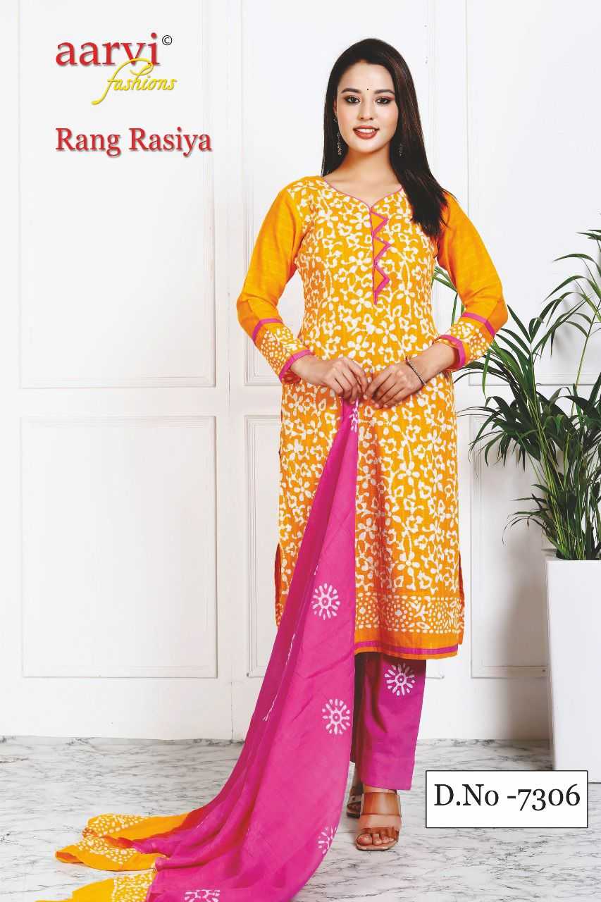 aarvi fashion rang rasiya vol 1 cotton unstitch kurti pant dupatta