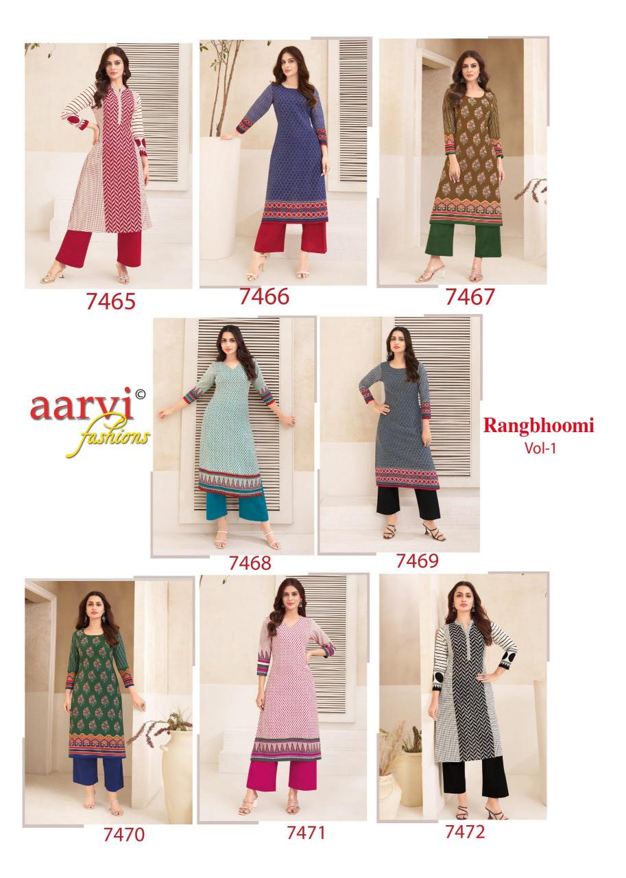 aarvi fashion rangbhoomi vol 1 readymade flex cotton kurti with pant