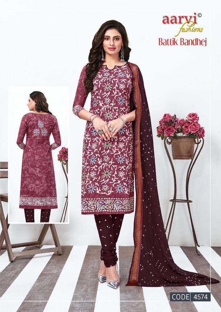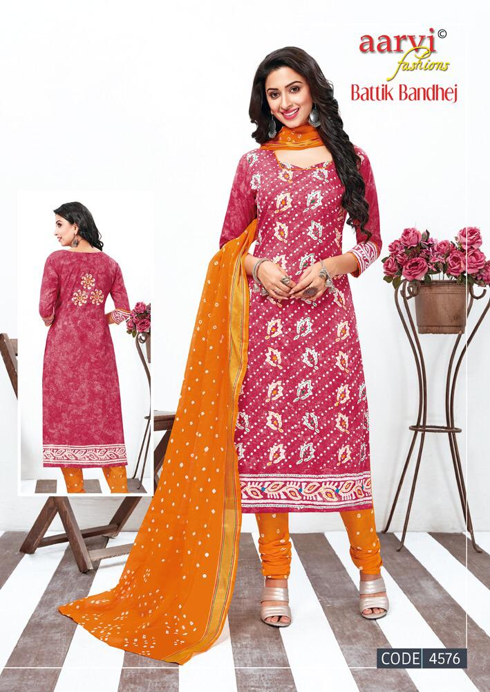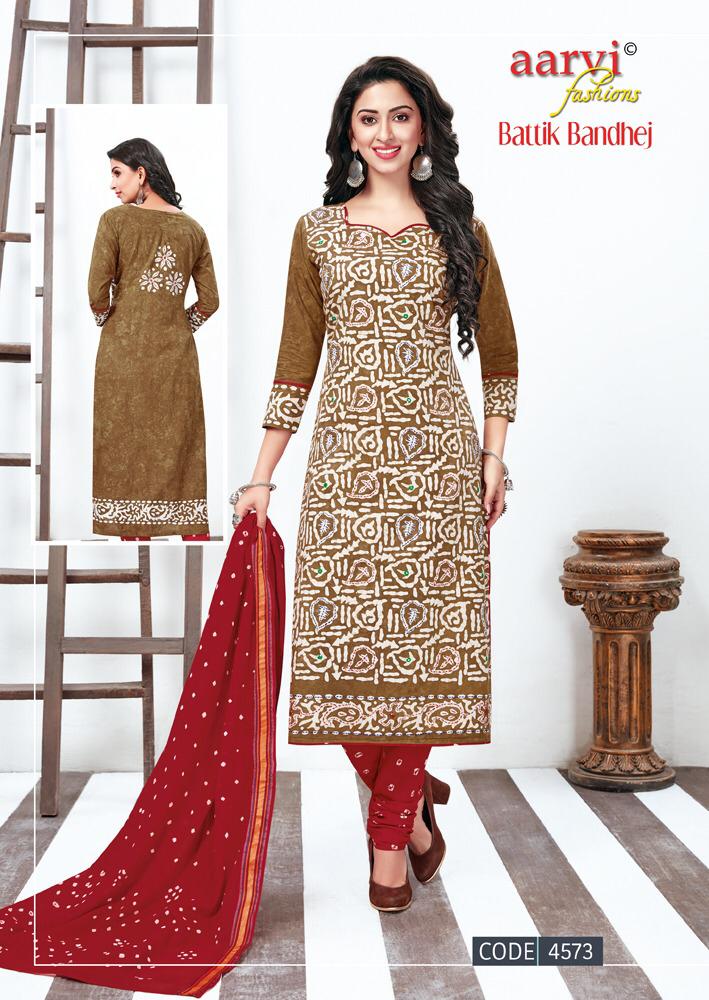 Aarvi Fashions Batik Bandhej Vol 2 Glace Cotton Casual Wear Printed Suits