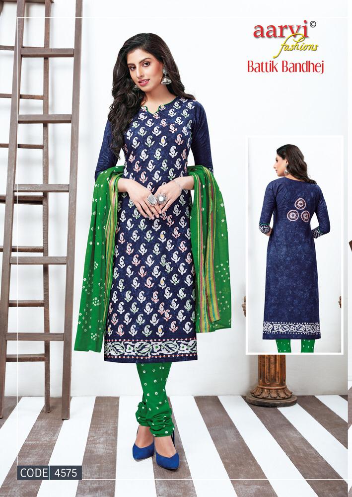 Aarvi fashion launches âÂÂBattik Bandhej vol 2â Top :- satin (glaze cotton ) 2:50 mtr with hand work Salwar :- satin ( glaze cotton ) 2:50 mtr with original bandhej Dupatta:- Gadhwal border cotton mulmul ( 2:25 mtr ) 6design Catalouge |