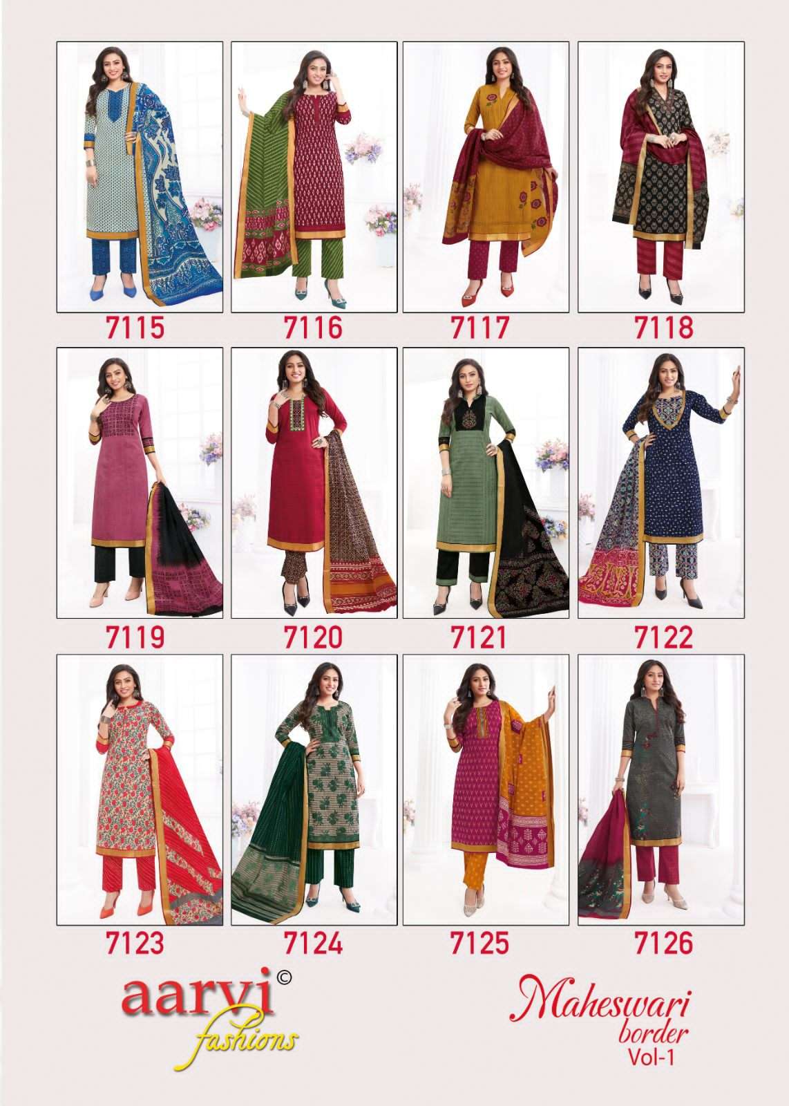 aarvi fashions maheshwari border vol 1 readymade daily wear salwar kameez collection