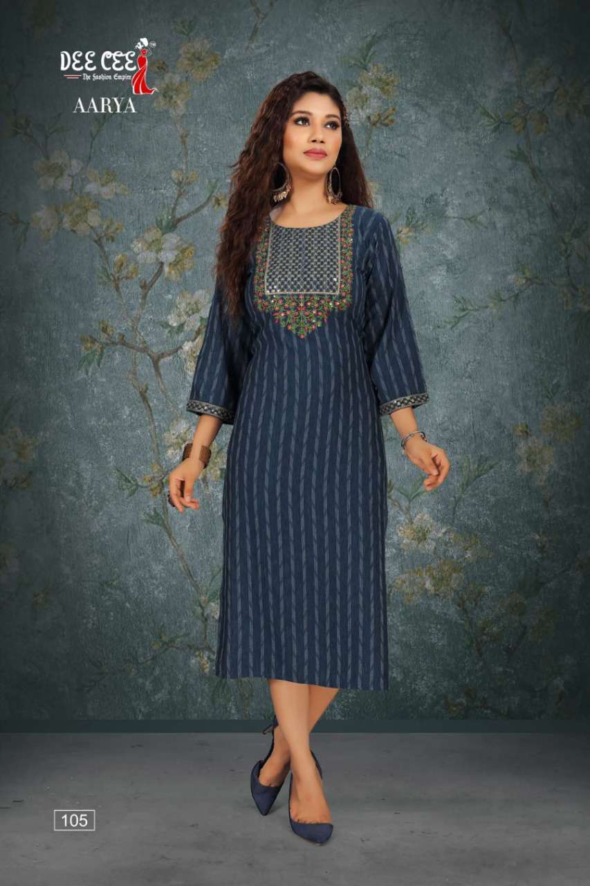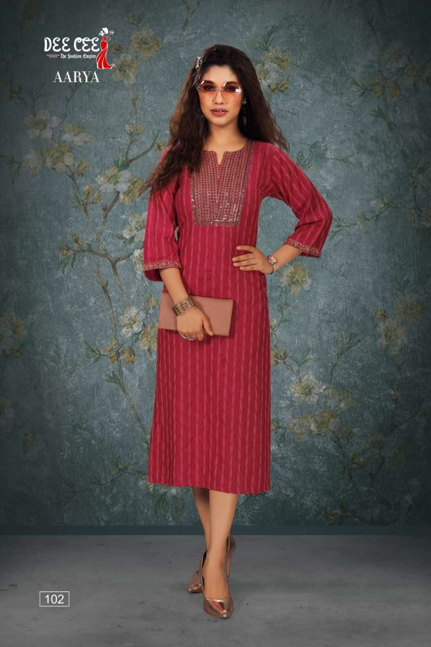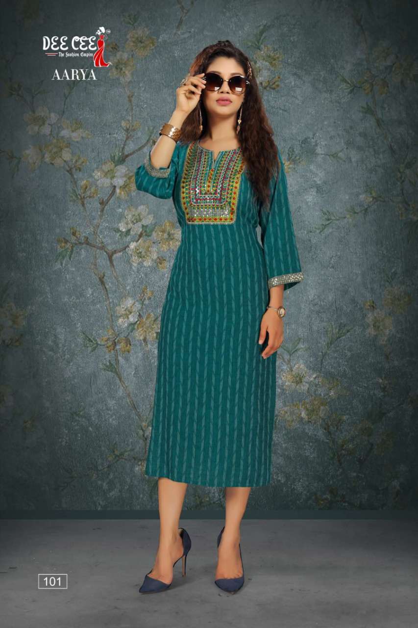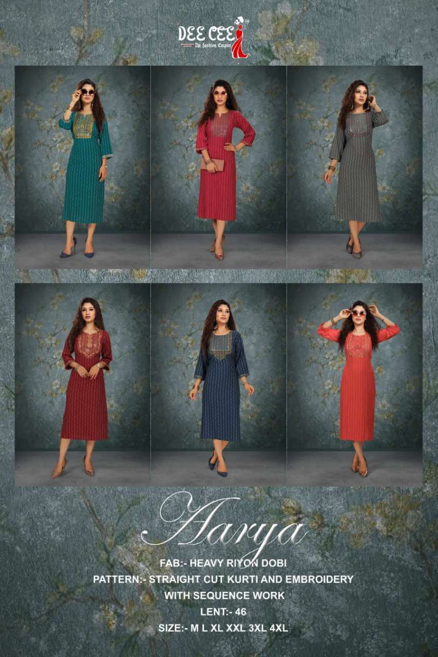 aarya by dee cee rayon straight cut fancy kurtis