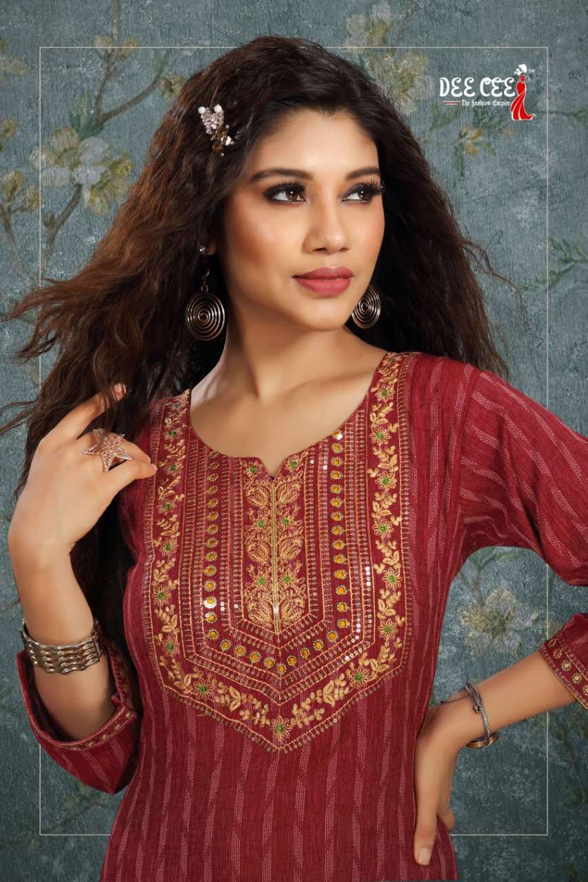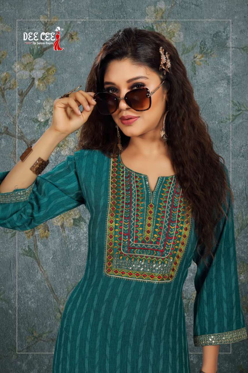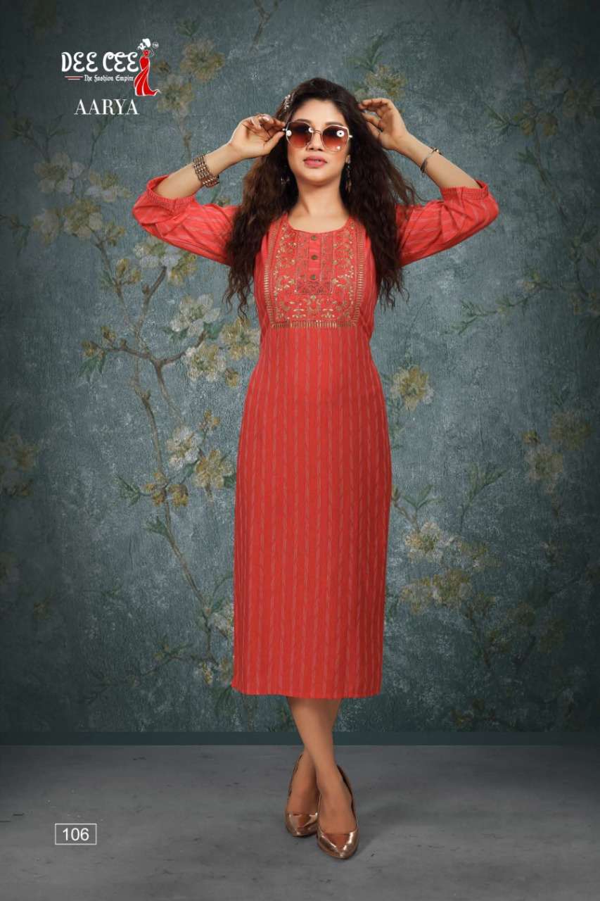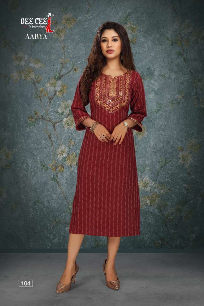 aarya by dee cee rayon straight cut fancy kurtis