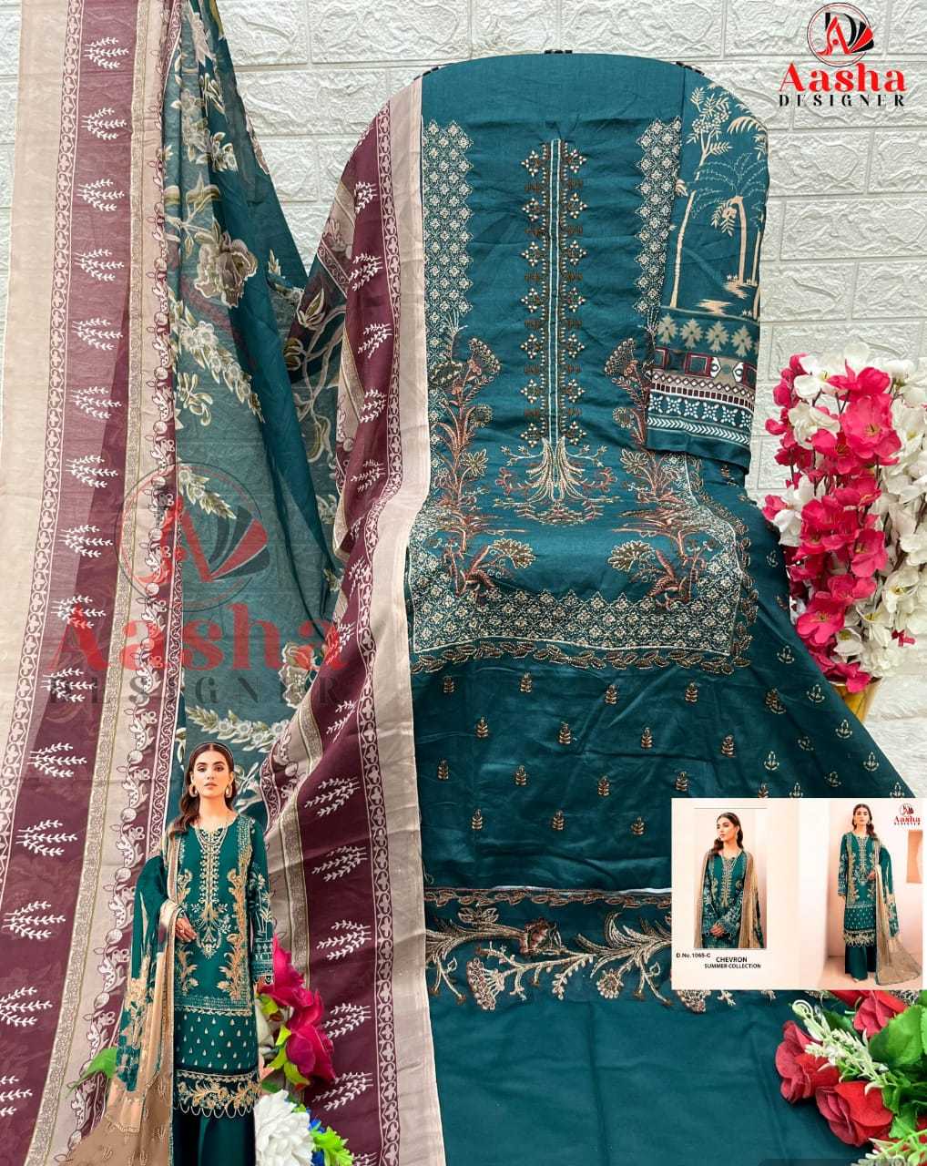 aasha designer chevron cotton embroidery work pakistani salwar suit