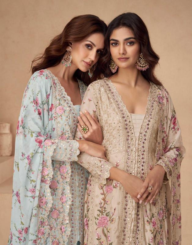 AASHIRWAD ➡️AARNA ⬅️ TOP-PREMIUM CHINNON SILK. (Free size stitch ) RATE -2895 per pcs |