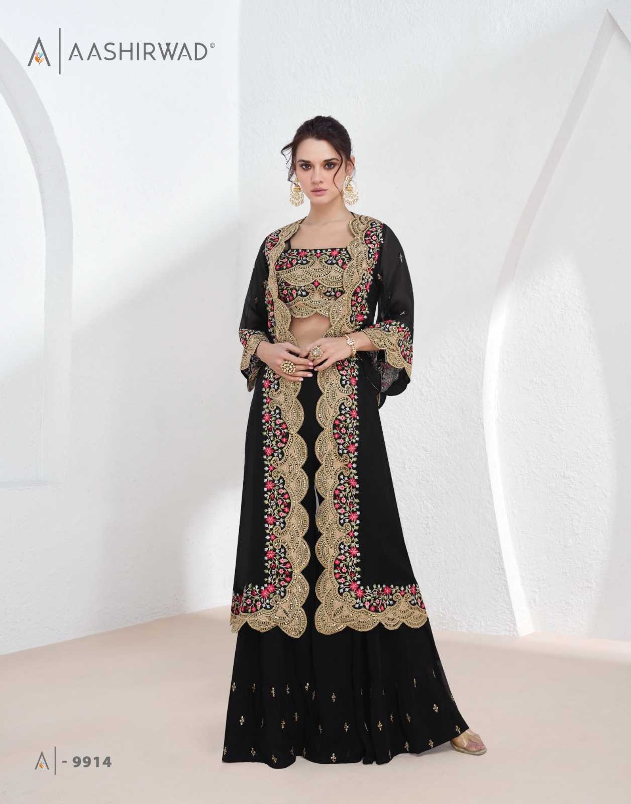 AASHIRWAD CREATION ➡️AARZOO ⬅️ TOP-REAL GEORGETTE (free size stitch ) Price - 2499/-per pcs Set to set Gst - 12 percent extra Note : M L XL XXL ON BOOKING RATE 2699/- |
