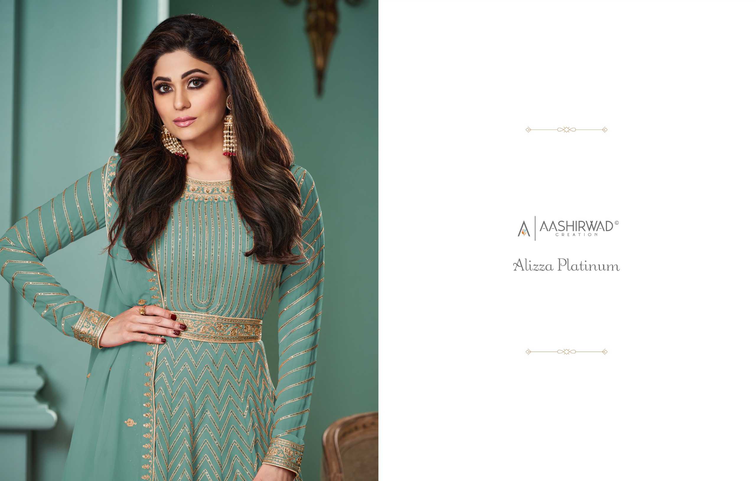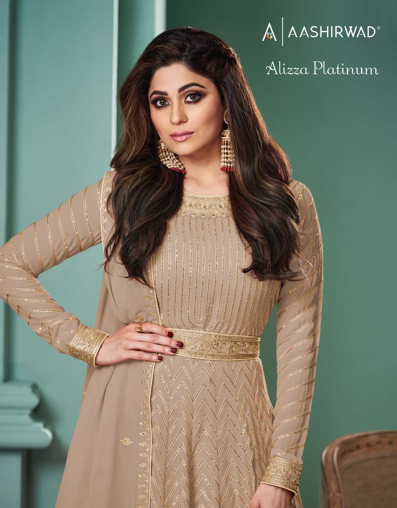 AASHIRWAD CREATION ➡️ALIZZA PLATINUM ⬅️ TOP-REAL GEORGETTE (free size stitch ) Price - 2295 per pcs |