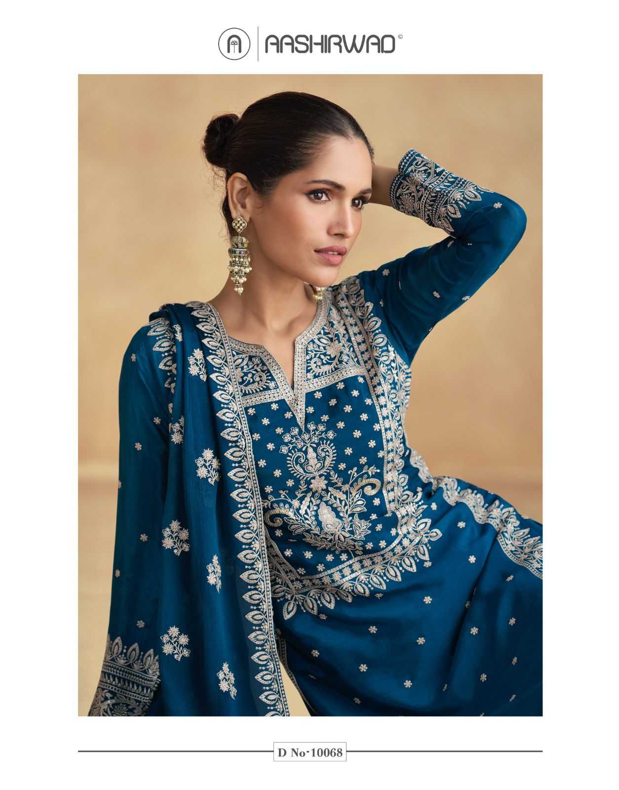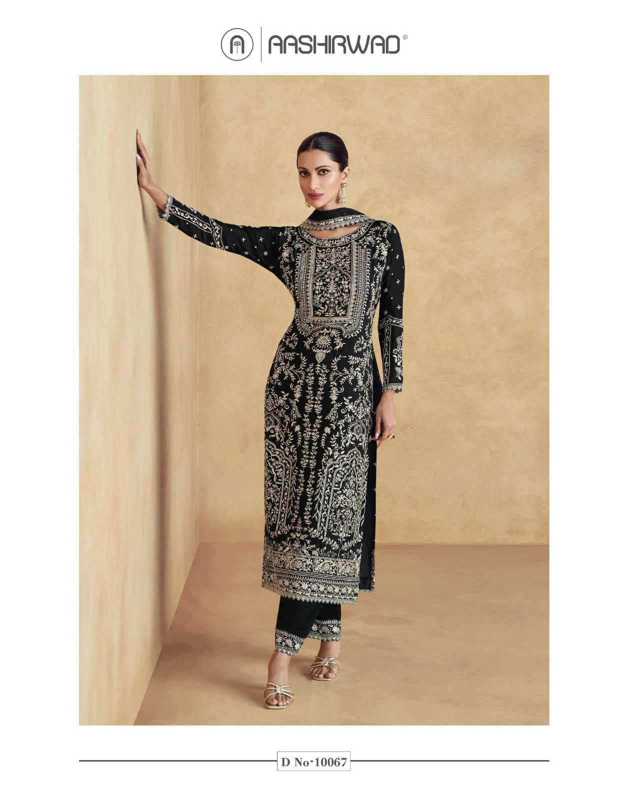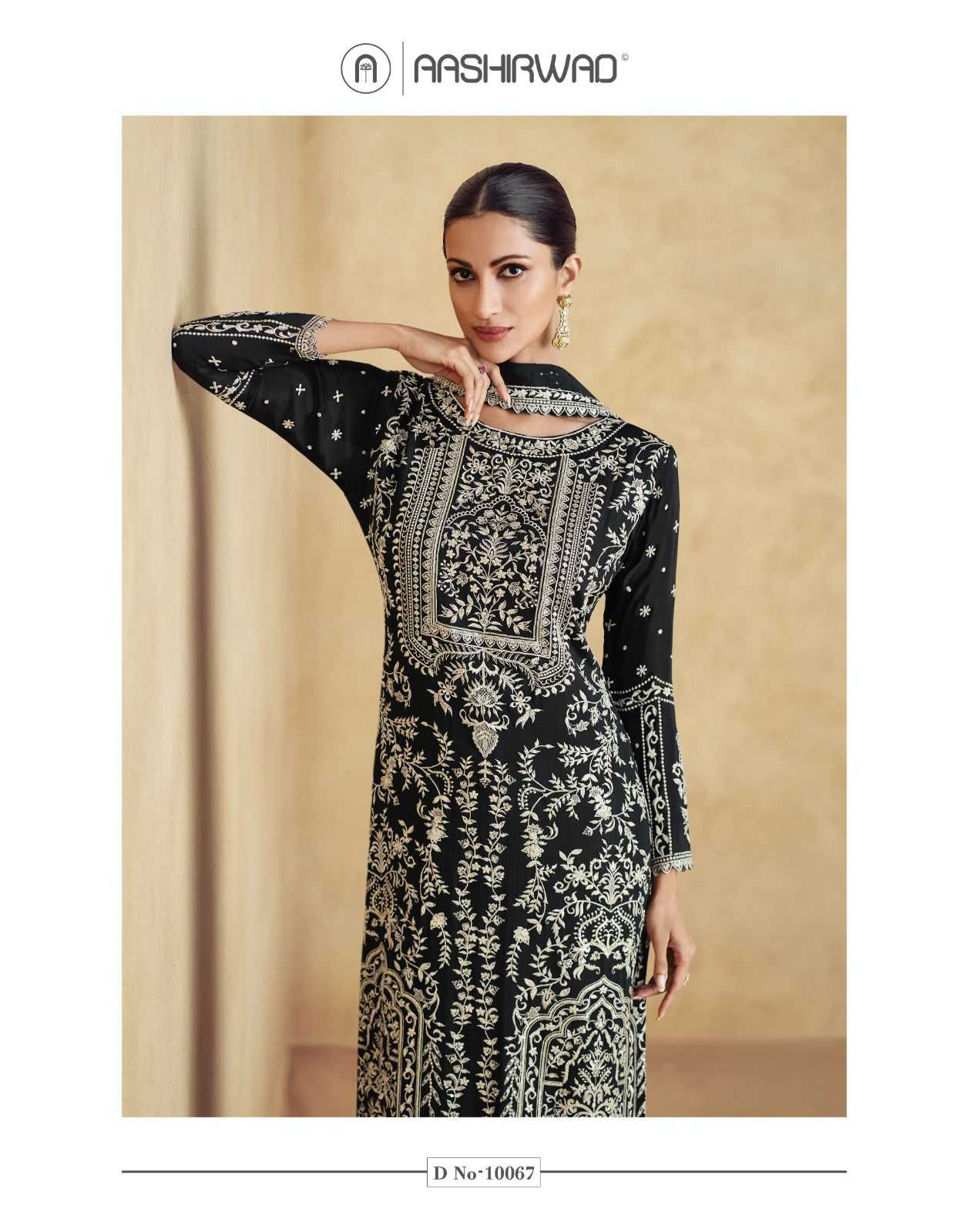 aashirwad creation amara 10067-10068 chinnon silk readymade fashionable plazzo 3pcs dress