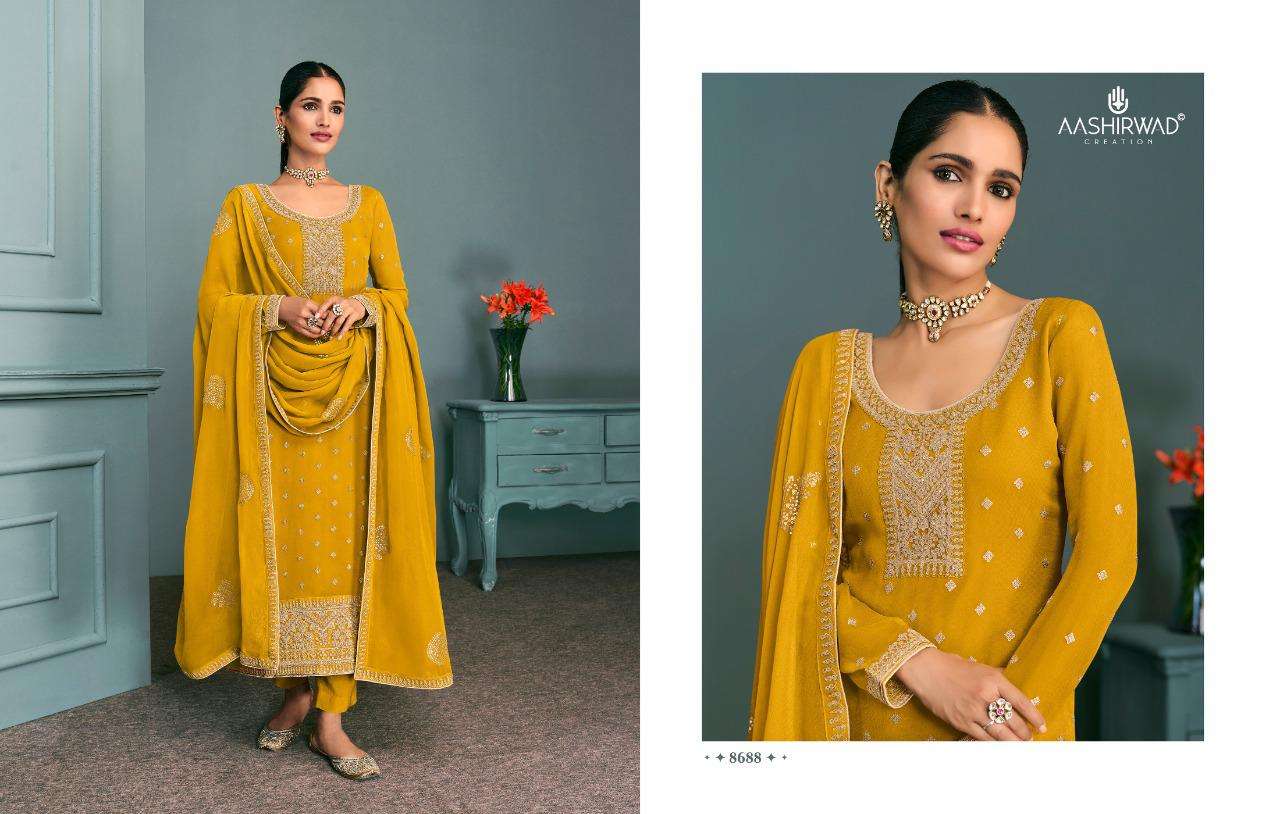 Aashirwad Creation Presents Latest Collection Launched on 12-06-2023. Presenting Beautiful collection of 6 PCS with Unstitched .