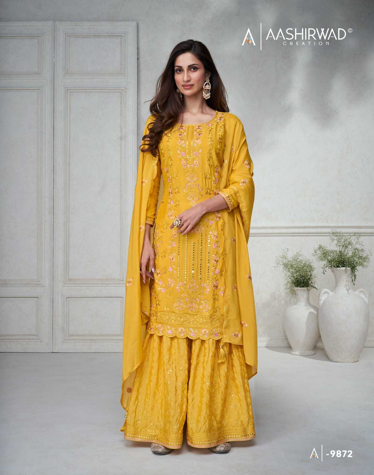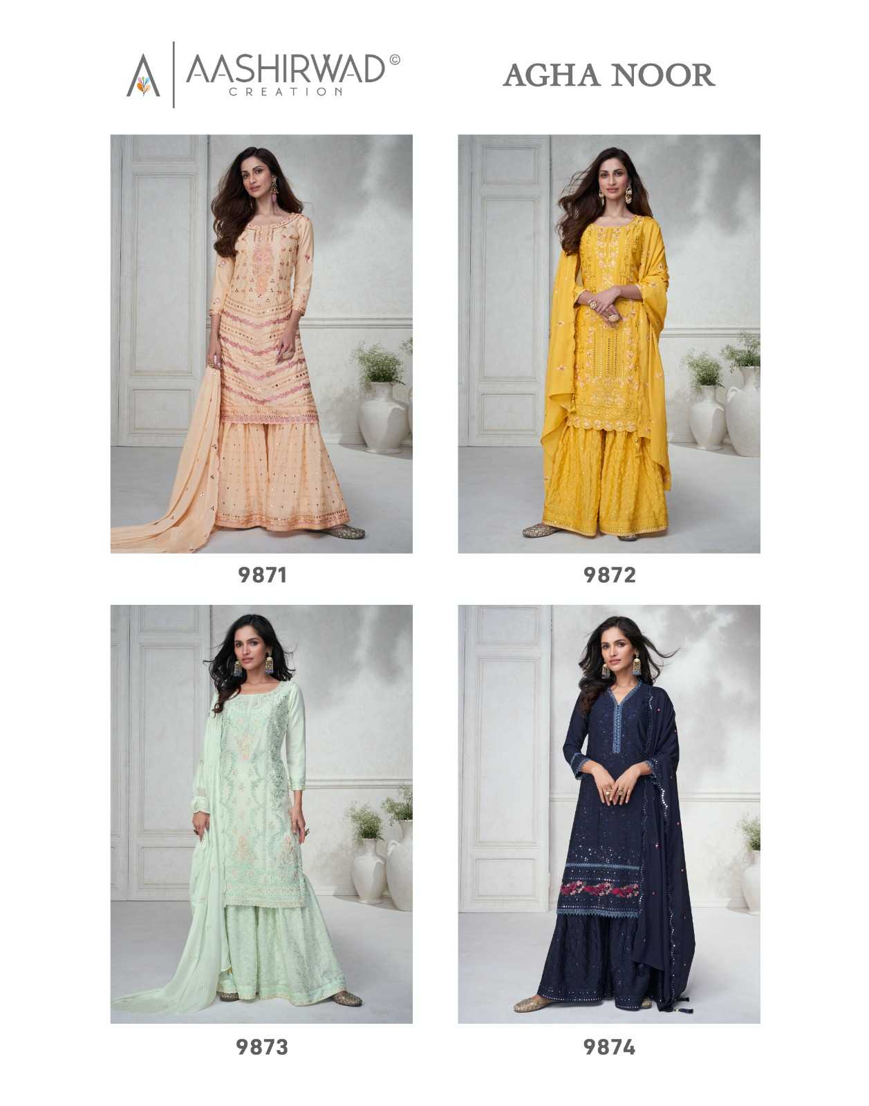 aashirwad creation gulkand agha noor 9870-9874 readymade designer plazzo style salwar suit
