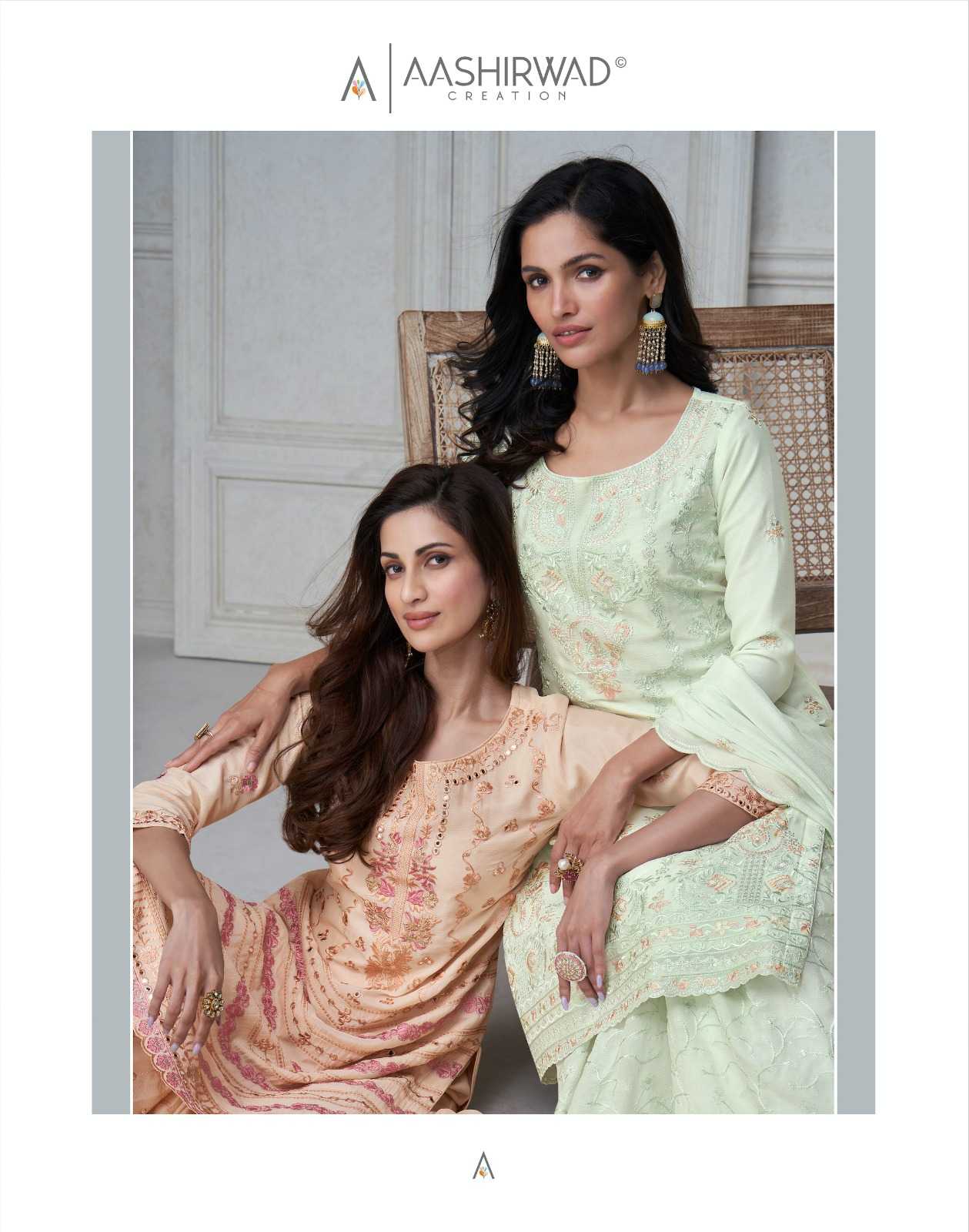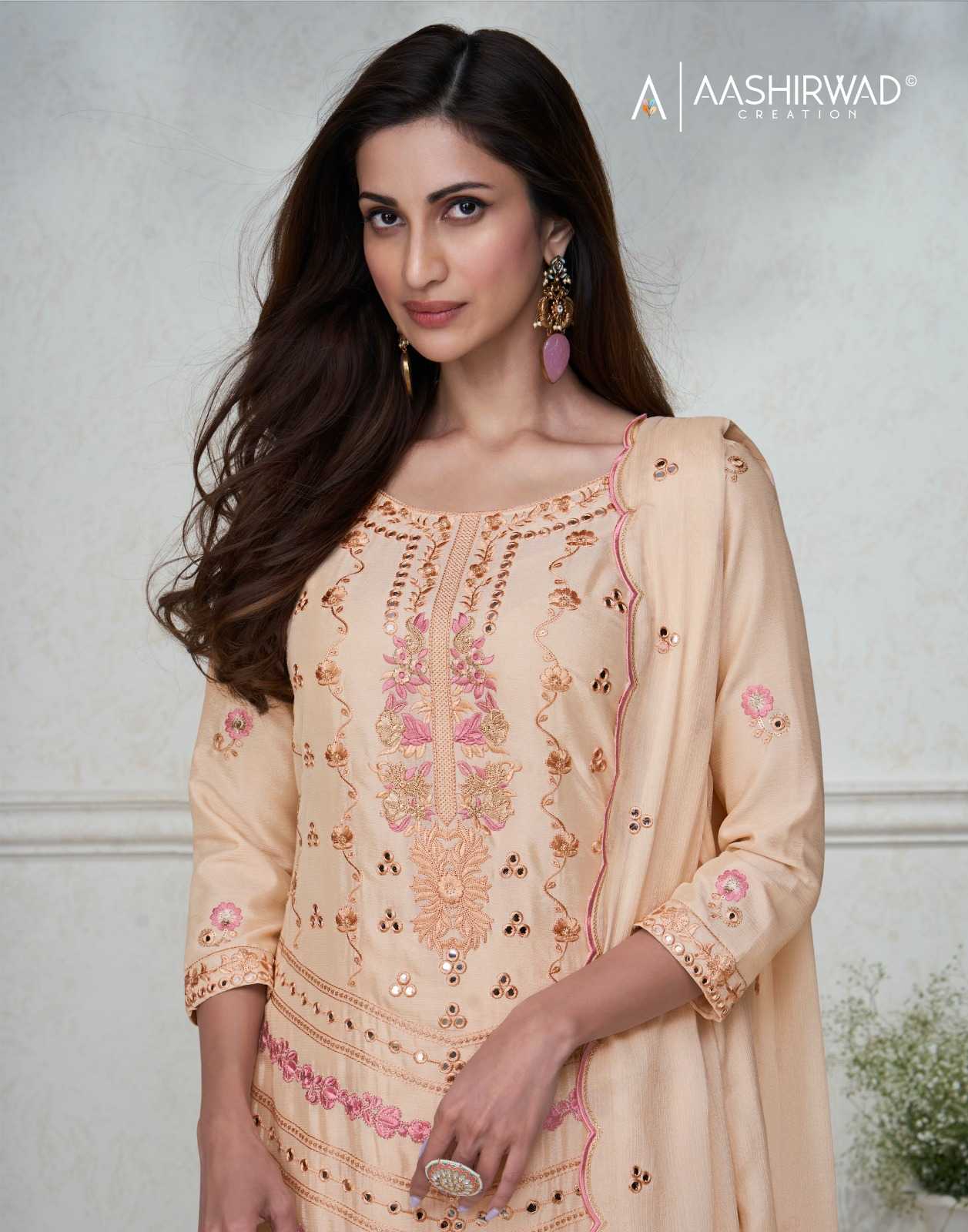 Aashirwad Creation Presents Latest Collection Launched on 01-03-2024. Presenting Beautiful collection of 4 PCS with Full Stitched FREE .