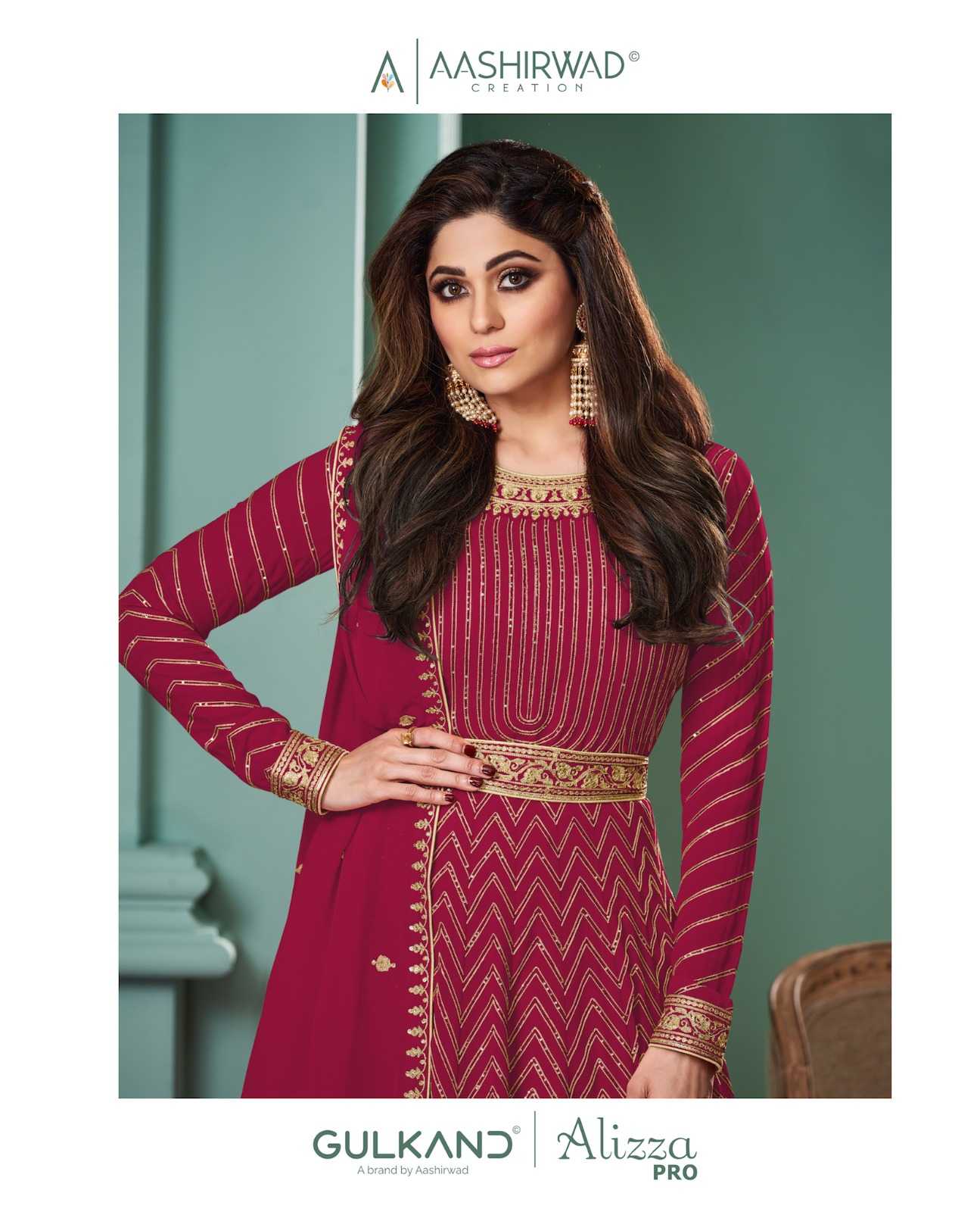 aashirwad creation gulkand alizza pro designer long gown with dupatta readymade collection