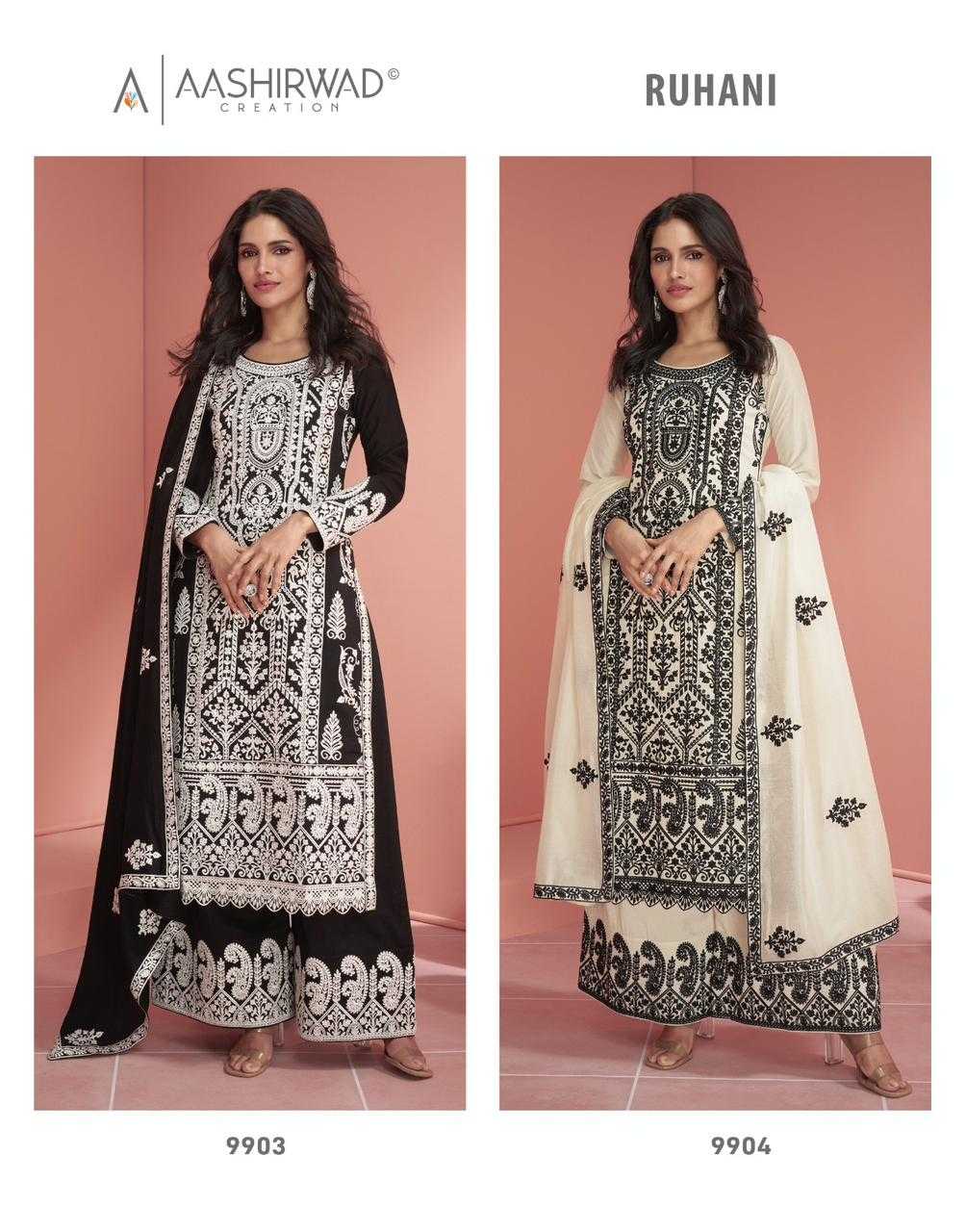 aashirwad creation gulkand ruhani 9903-9904 readymade pakistani plazzo kurti dupatta