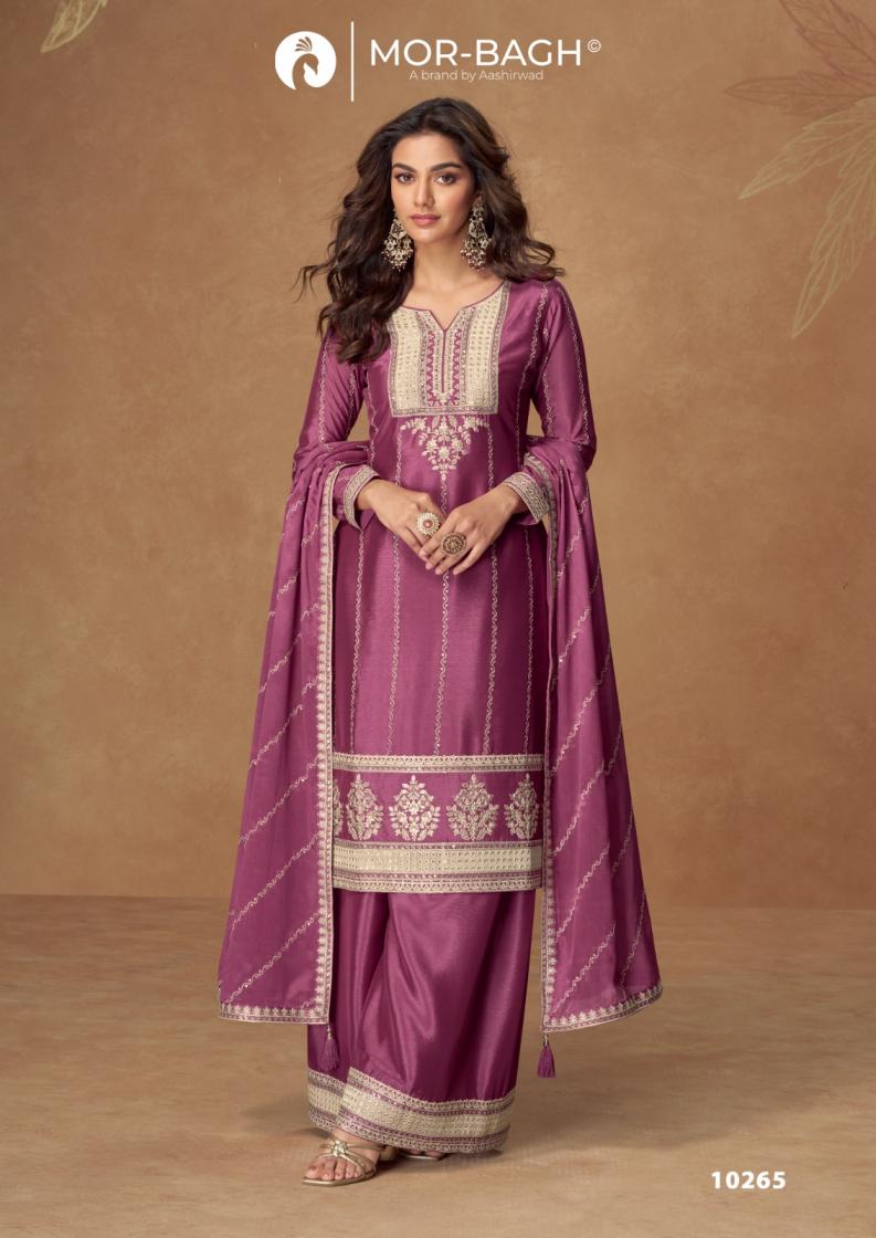aashirwad creation kaveri traditional chinon silk fully stitch plazzo style 3pcs dress