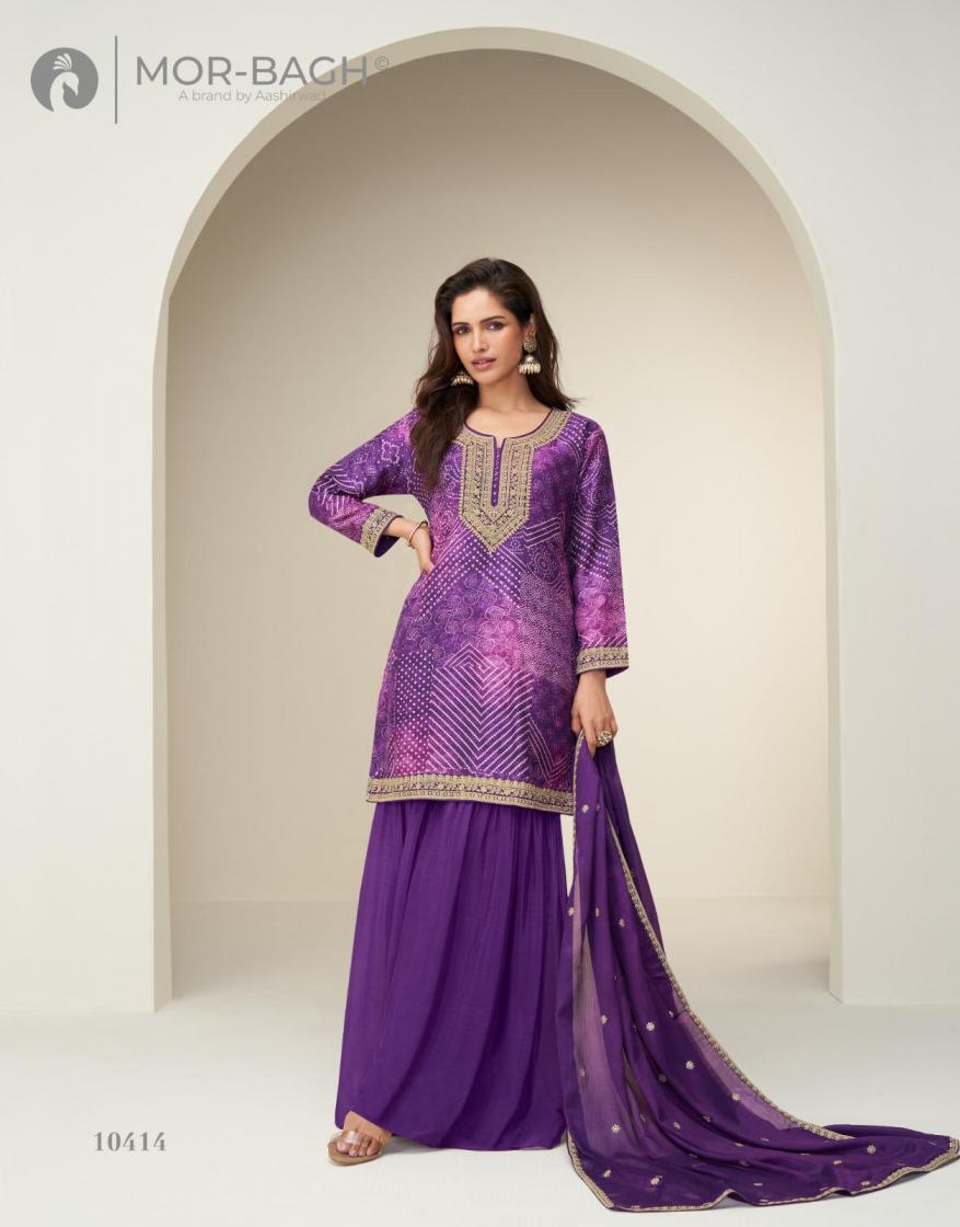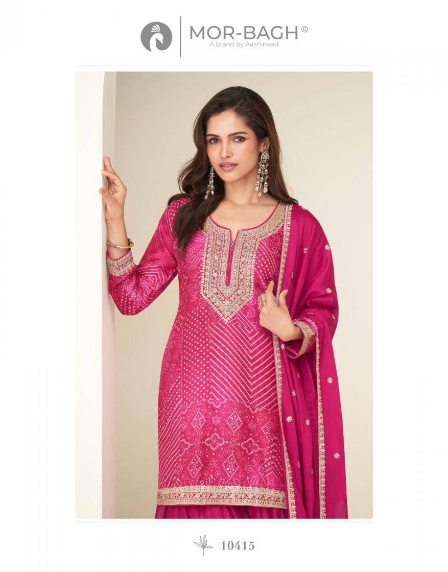 aashirwad creation kimaya fully stitch chinon silk plazzo style dress