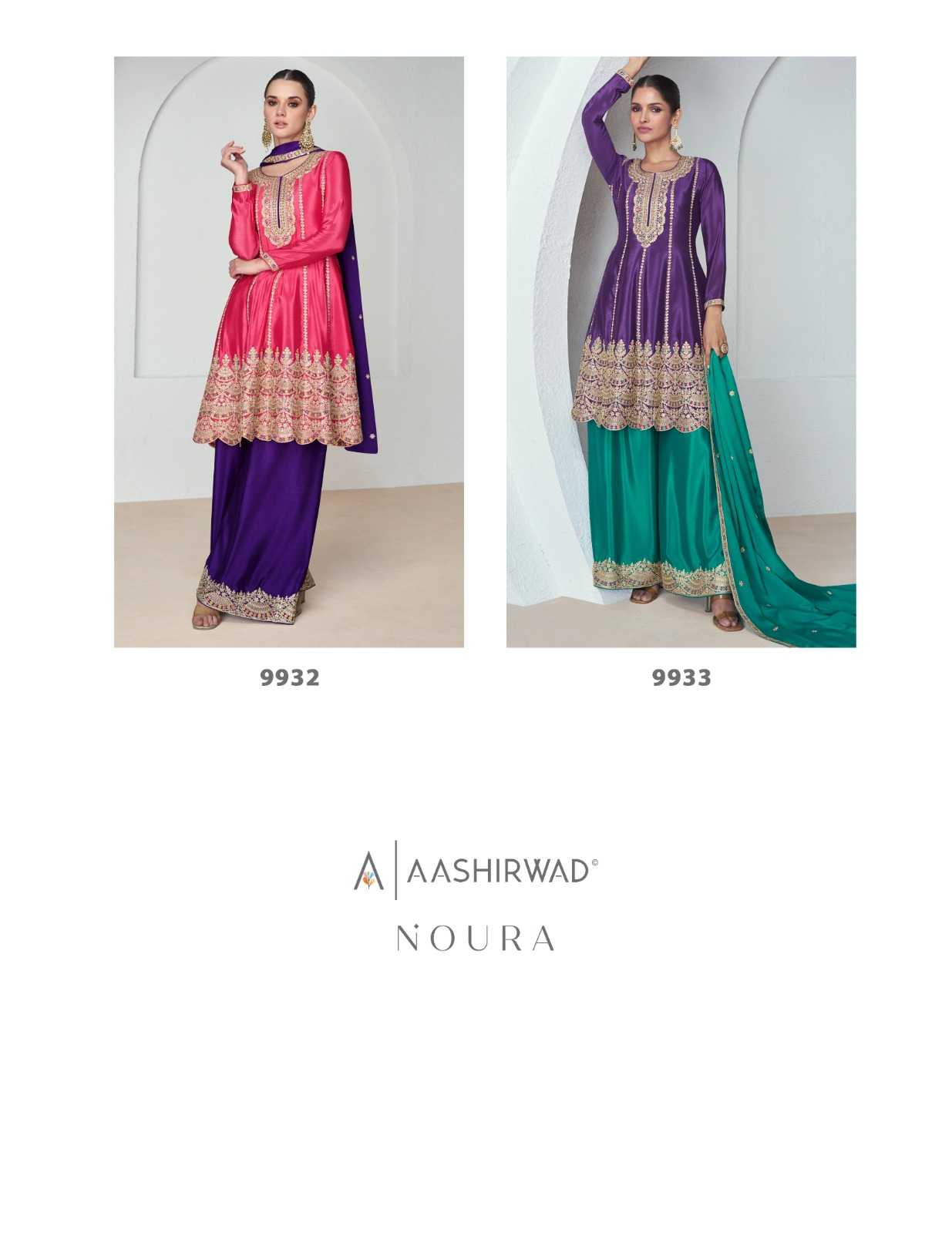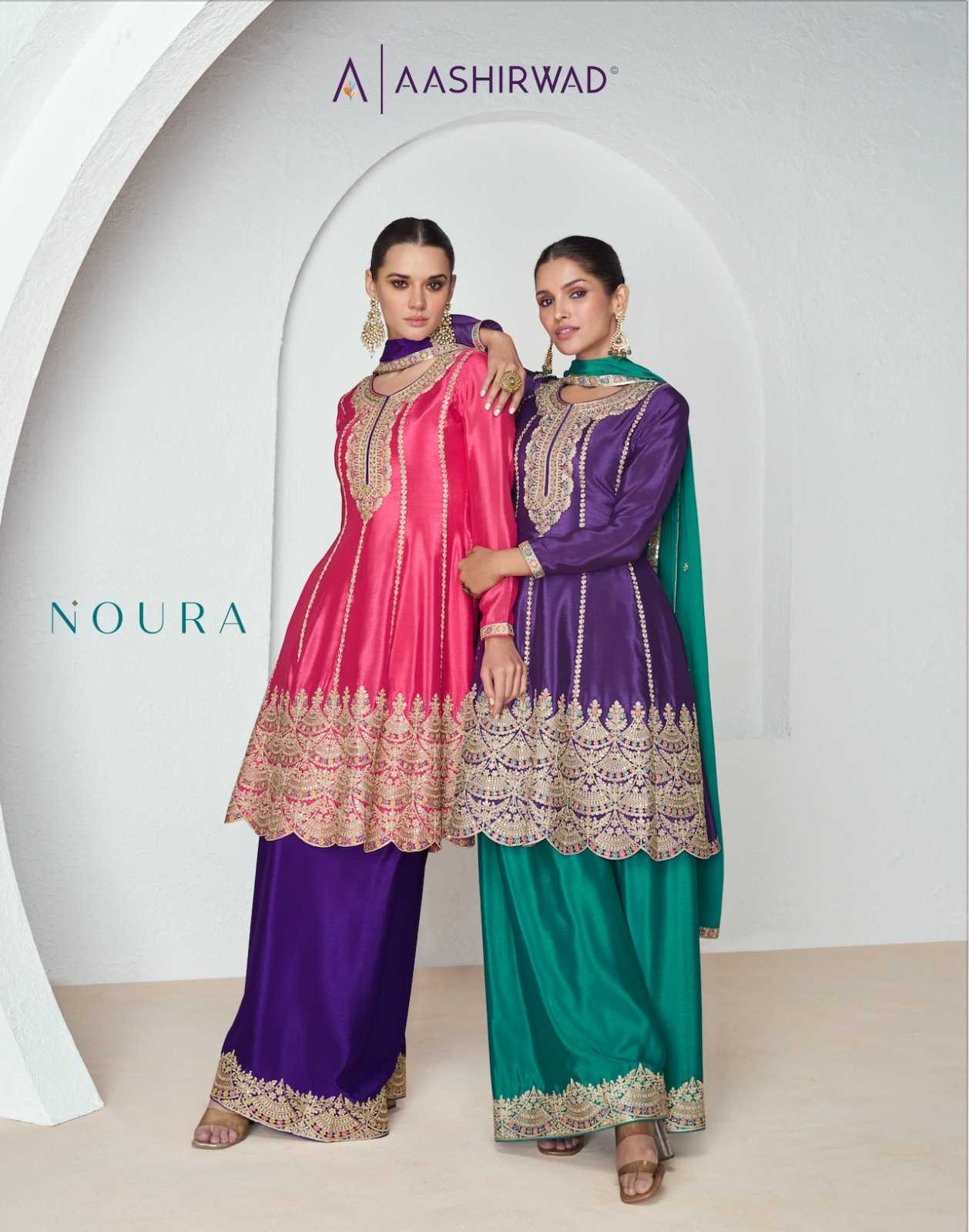 AASHIRWAD CREATION PRESENT NEW FREE SIZE STITCHED CATLOG ➡️NOURA ⬅️ TOP-PREMIUM CHINNON SILK. (Free size stitch ) RATE - 2499/- per pcs Set to set GST -12 PERCENT EXTRA |