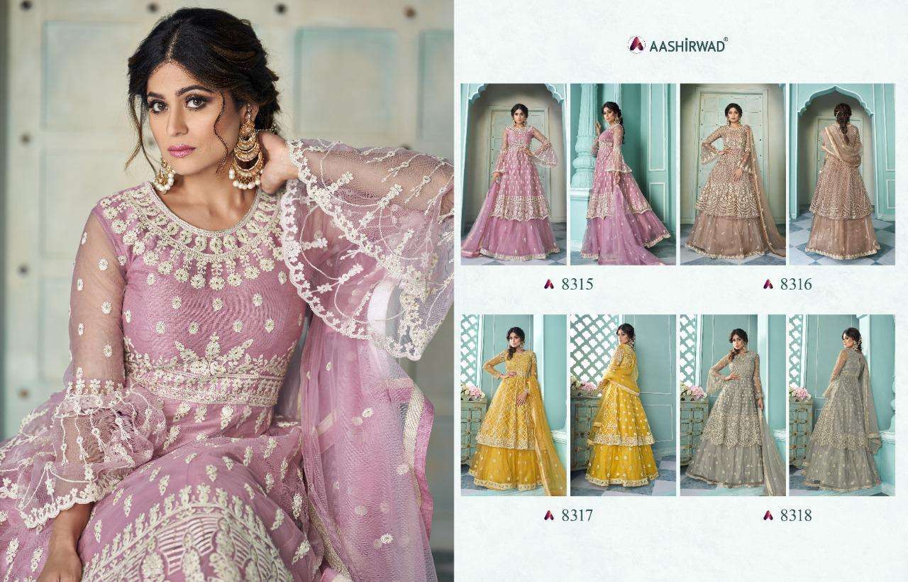aashirwad creation shaheen 8315-8318 series heavy skirt pattern ladies dresses collection 2021