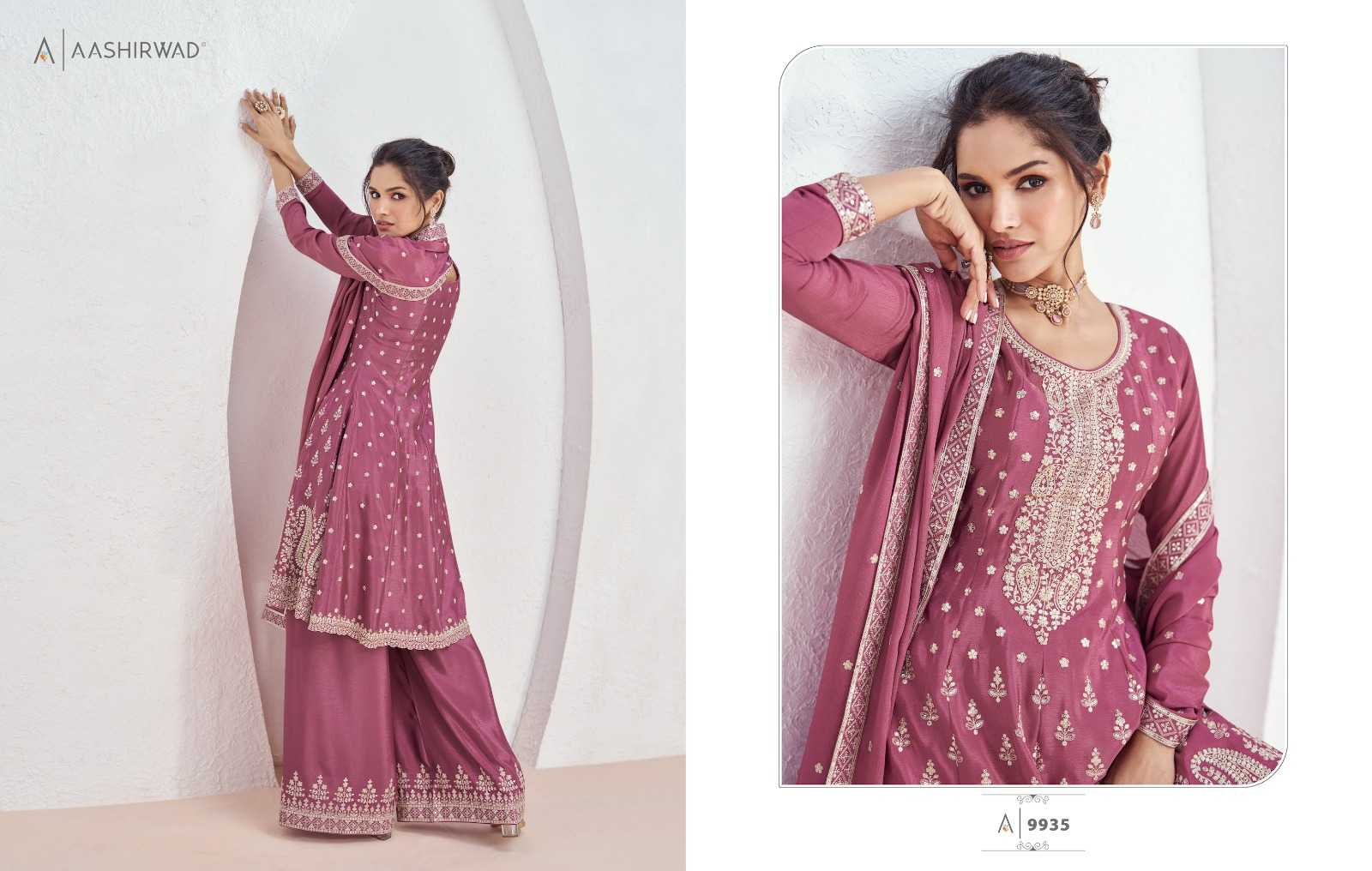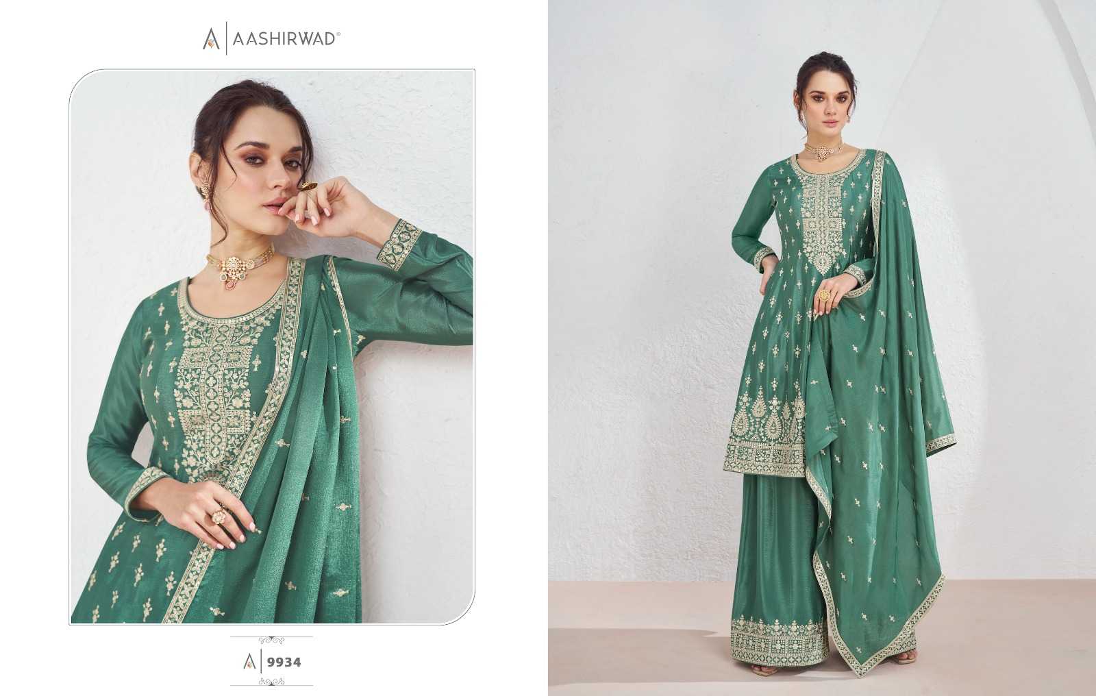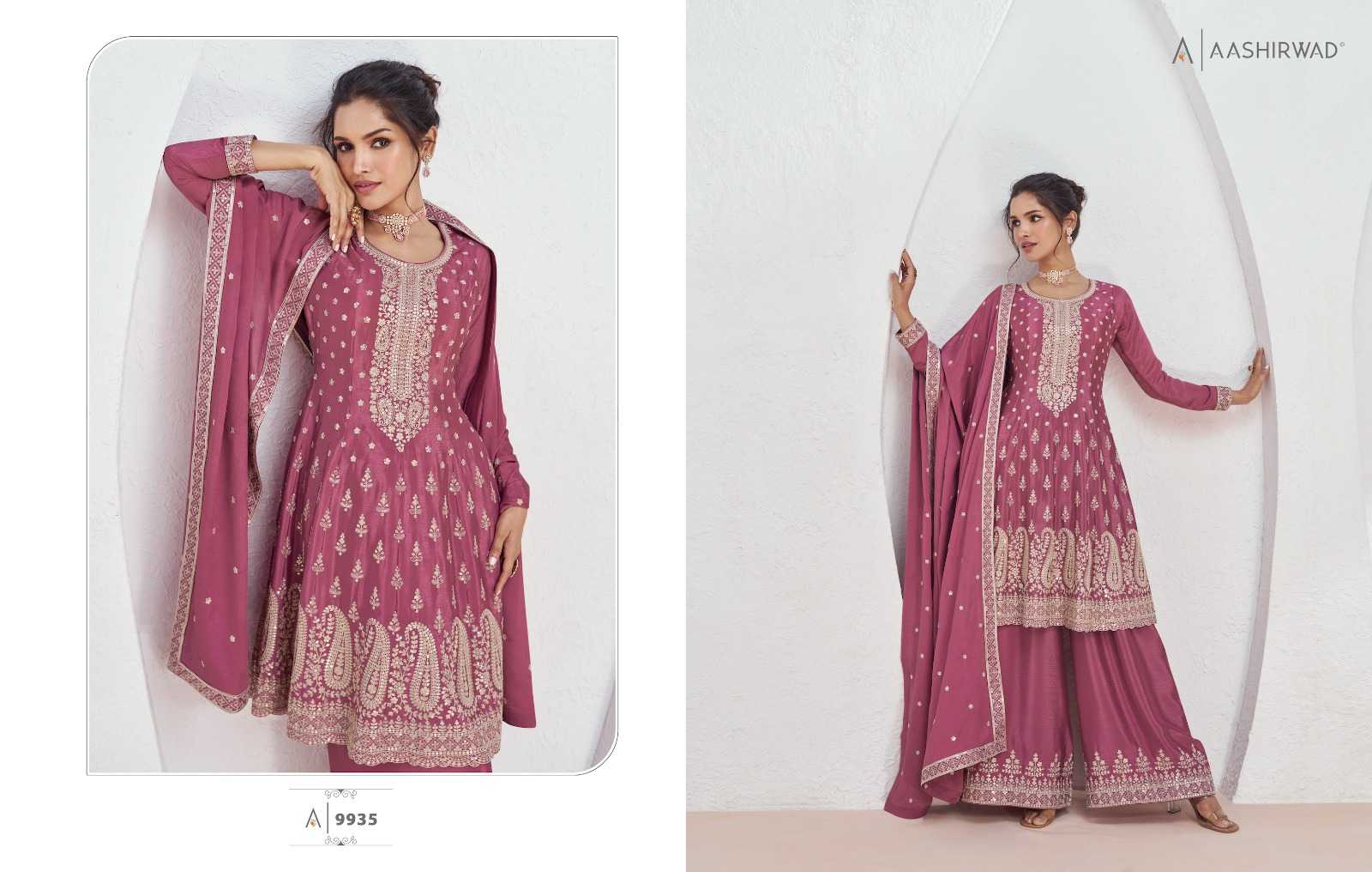 AASHIRWAD CREATION PRESENT NEW FREE SIZE STITCHED CATLOG ➡️VOLNA ⬅️ TOP-PREMIUM CHINNON SILK. (Free size stitch ) RATE -2495 |