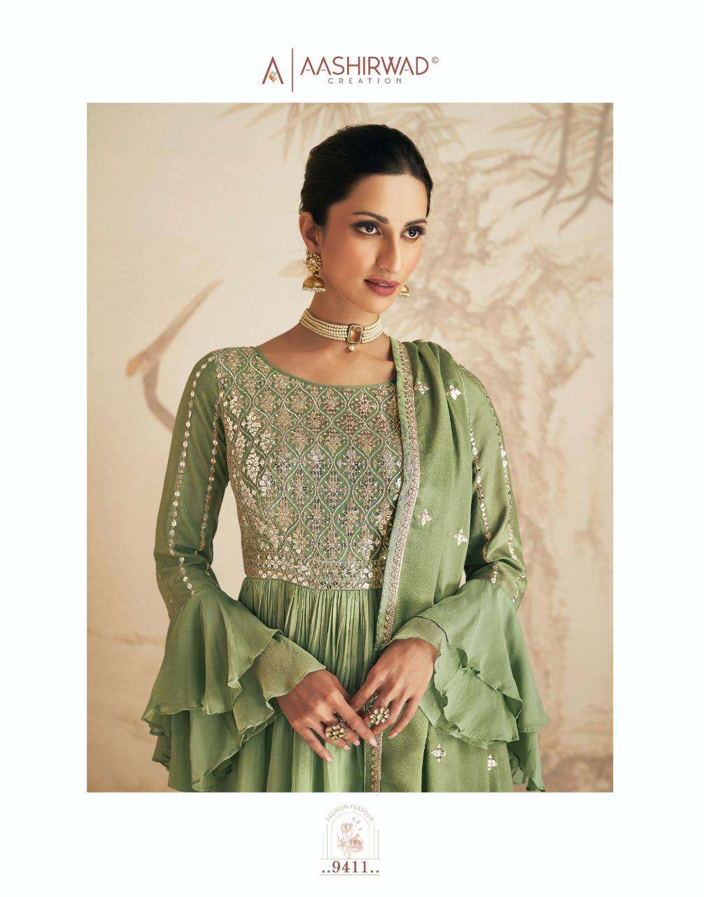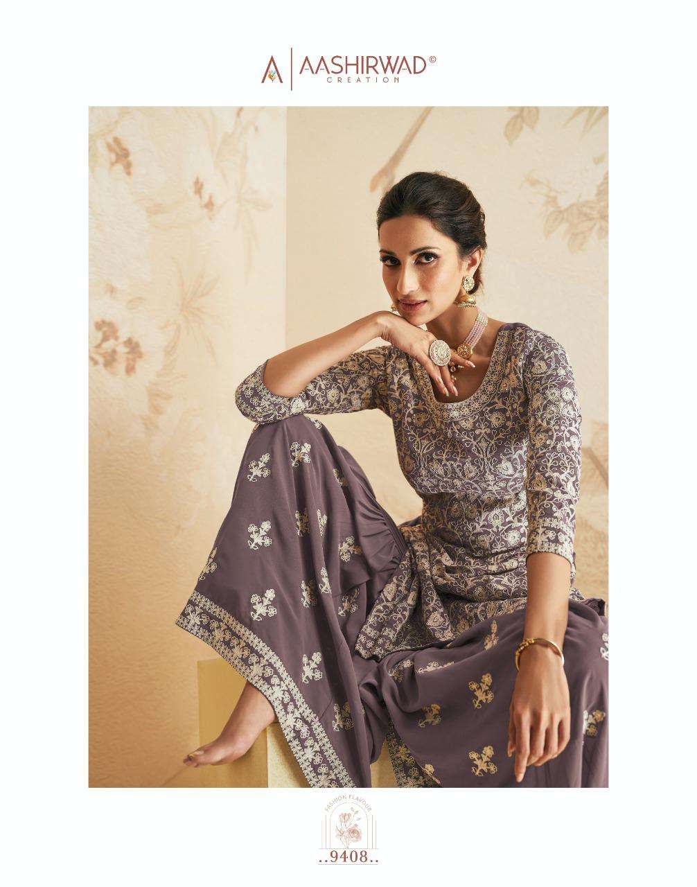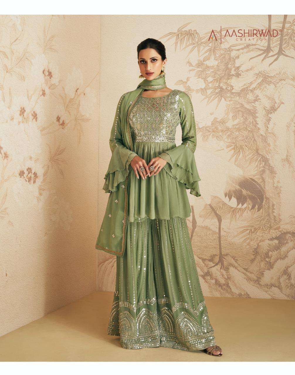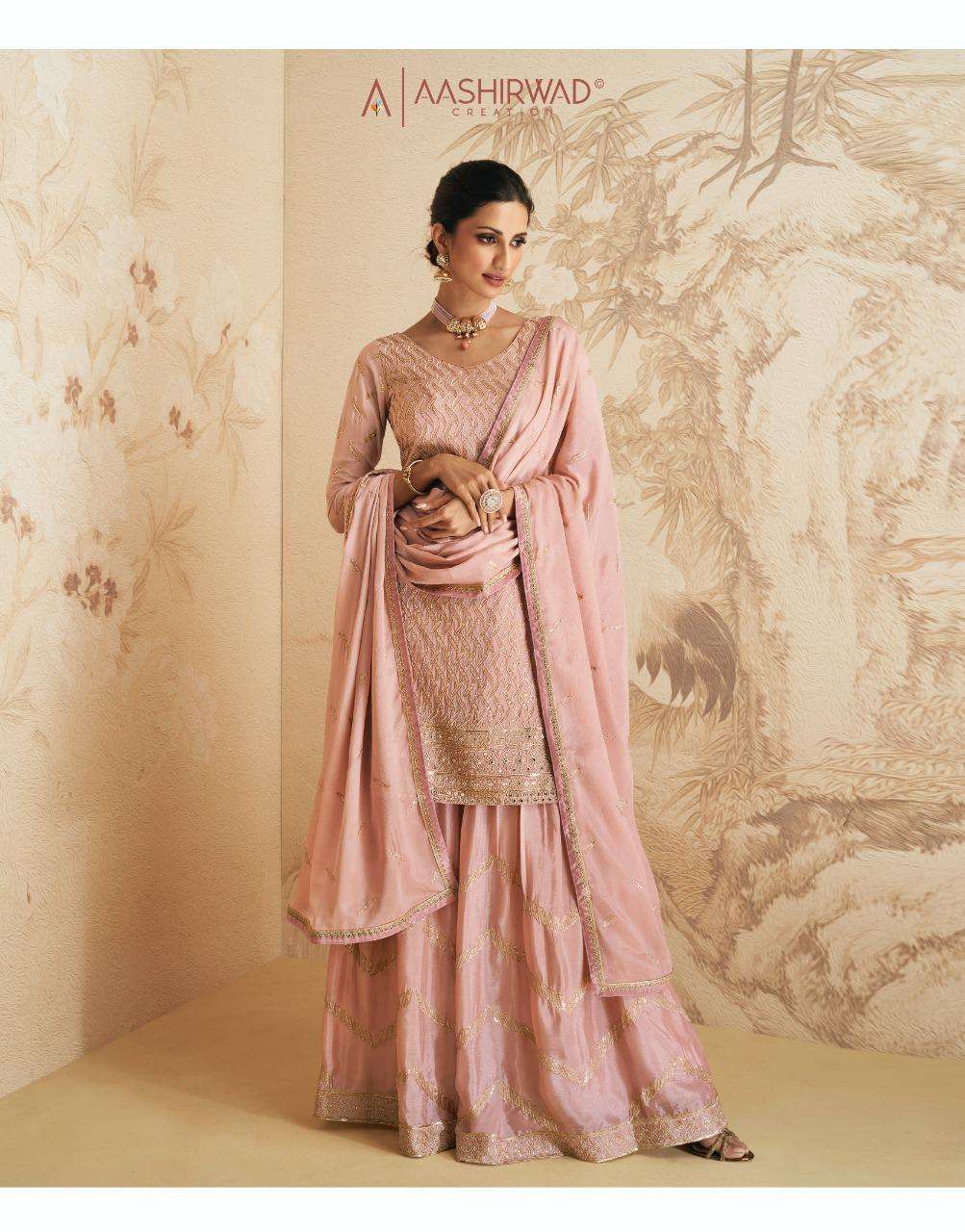 AASHIRWAD CREATION ➡️ELAN⬅️ TOP-REAL GEORGETTE N CHINNON (free size stitch ) Price - 2295 |