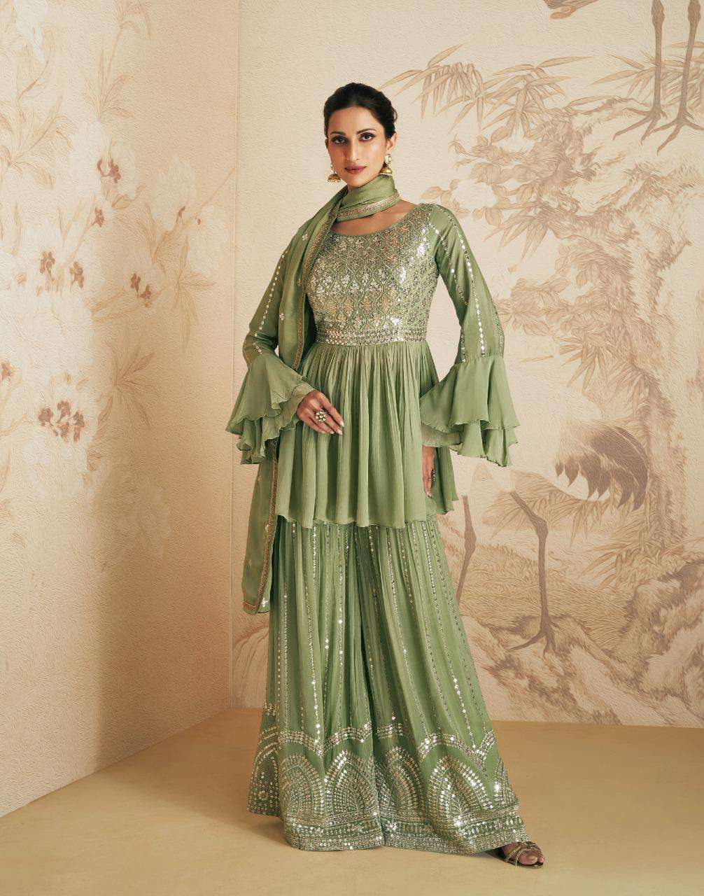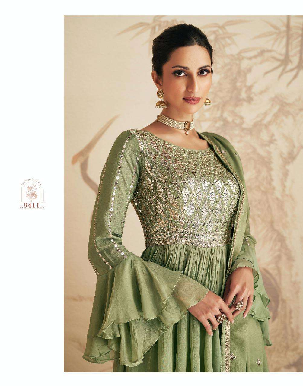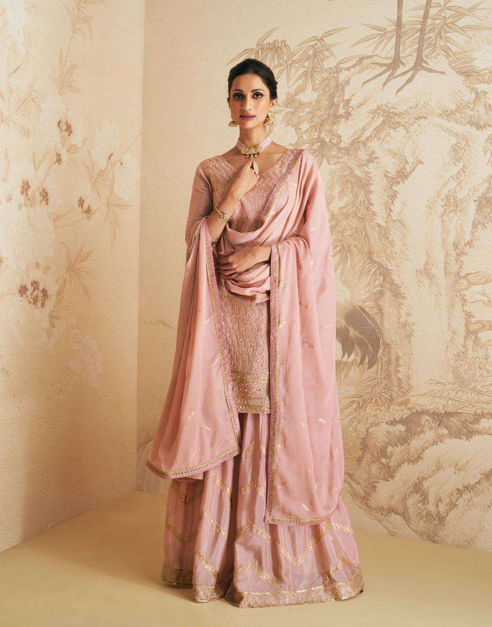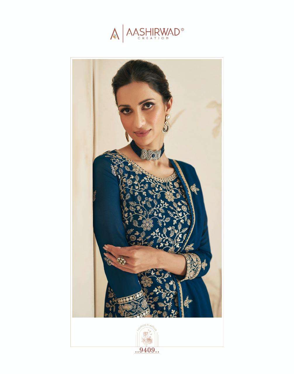 AASHIRWAD CREATION ➡️ELAN⬅️ TOP-REAL GEORGETTE N CHINNON (free size stitch ) Price - 2295 |