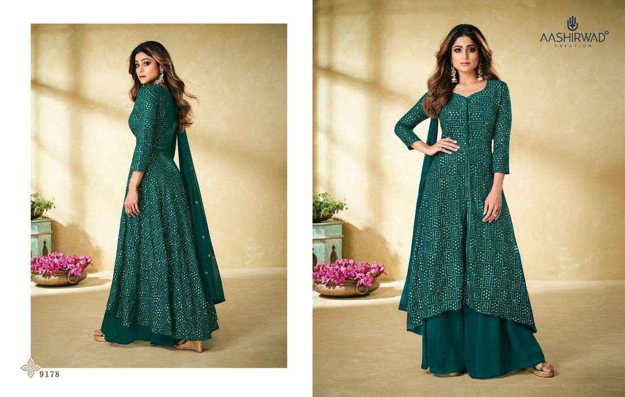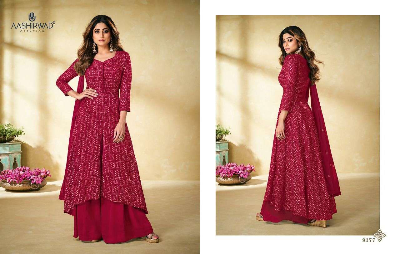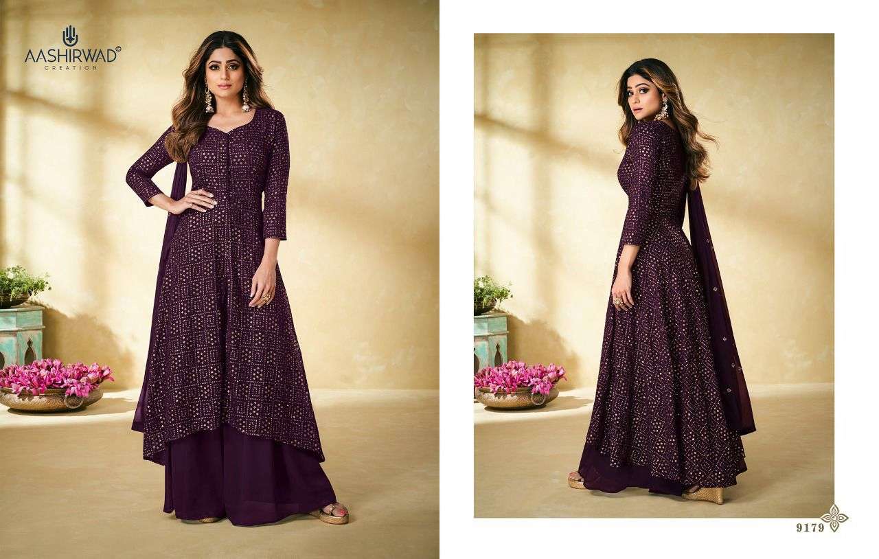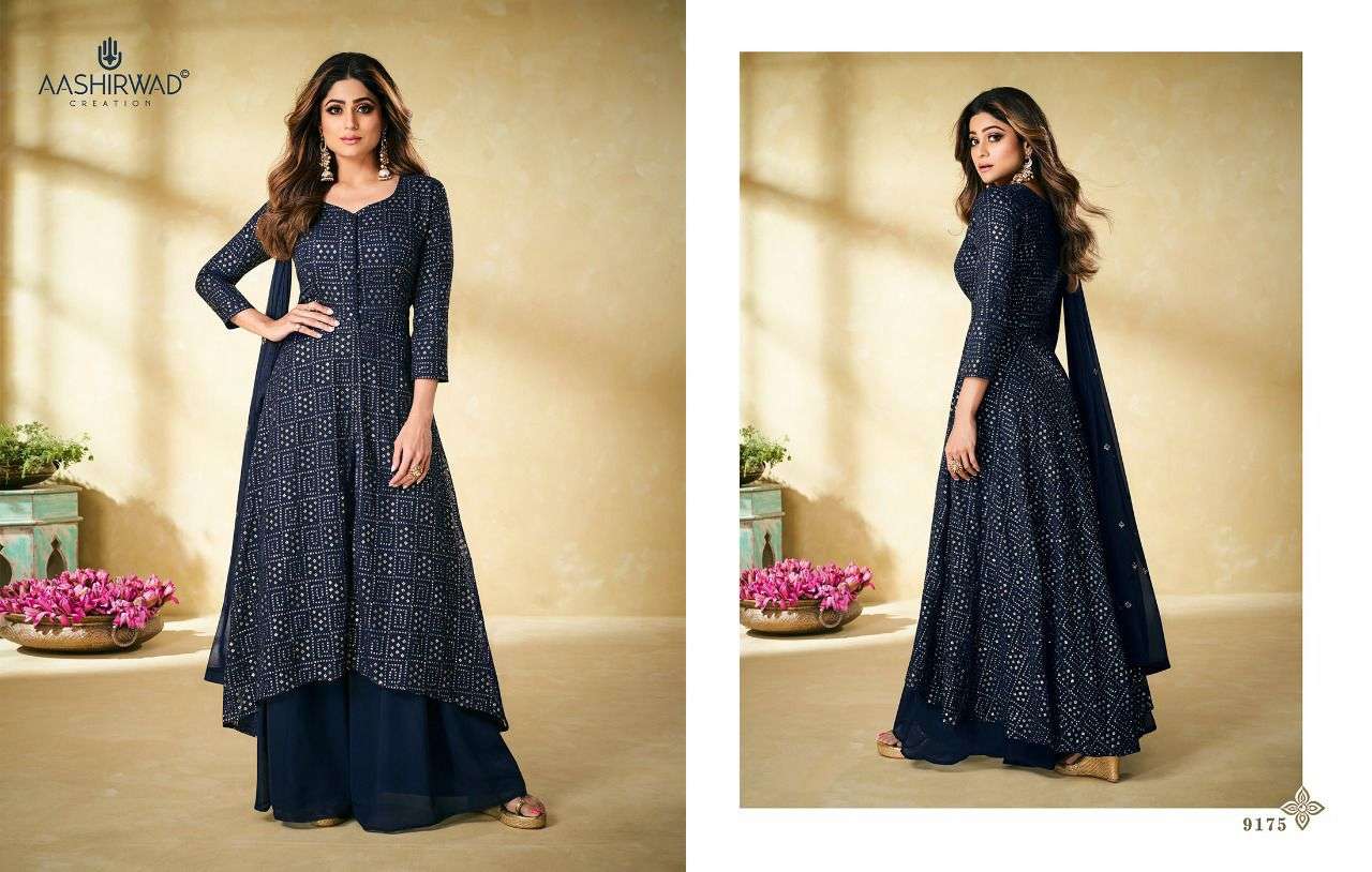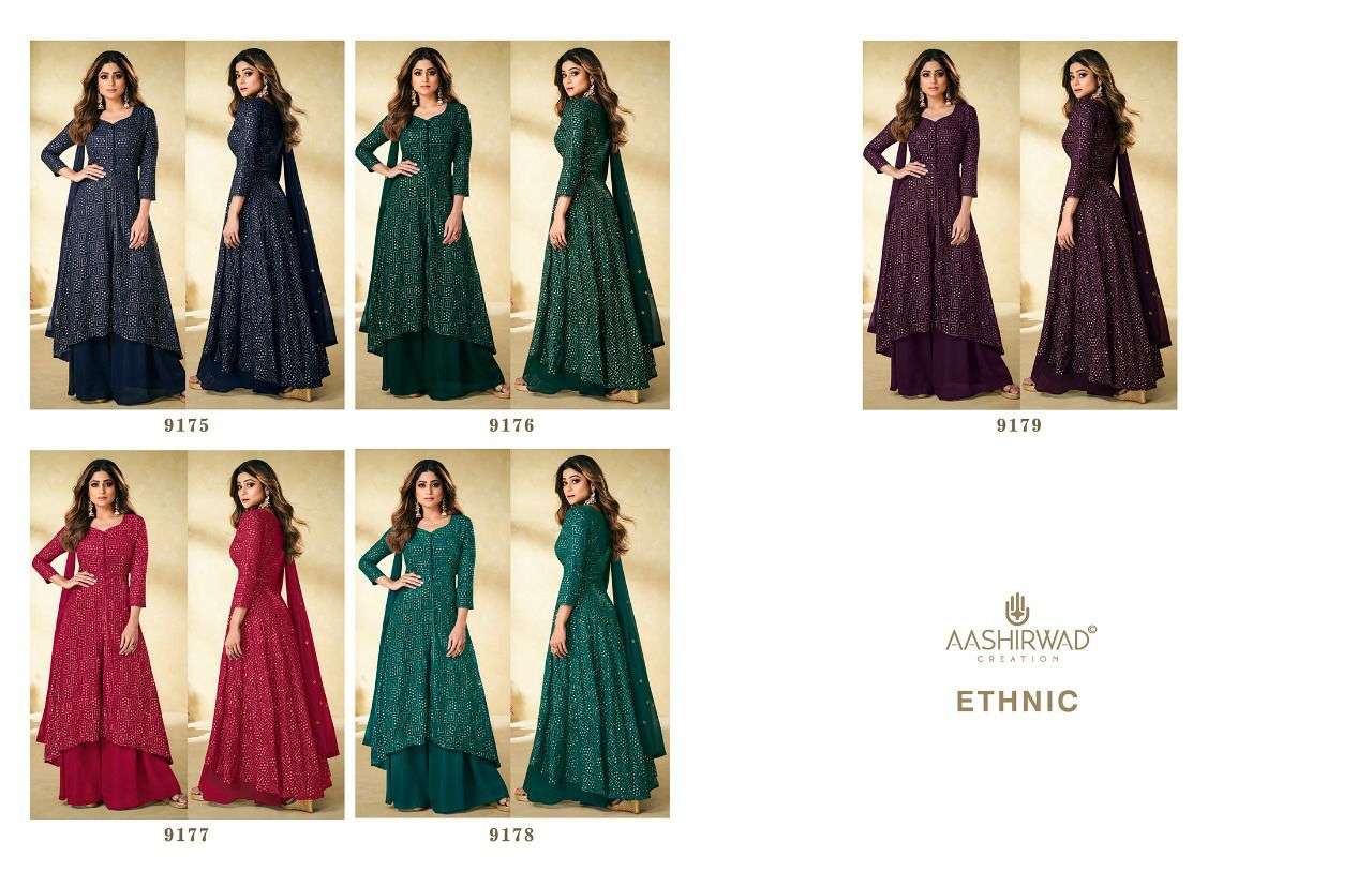 aashirwad ethnic 9175-9179 series readymade party wear plazzo pattern dresses