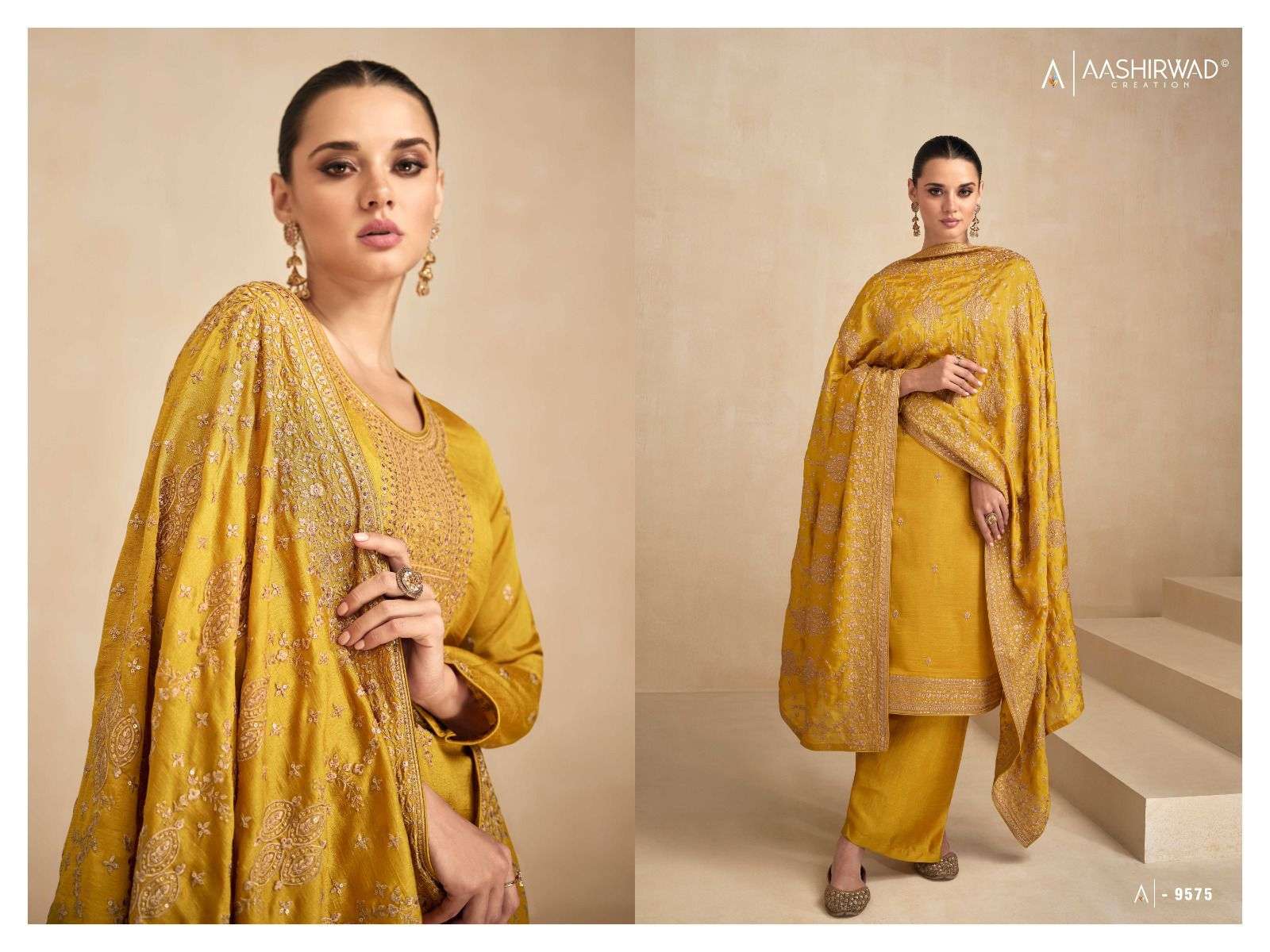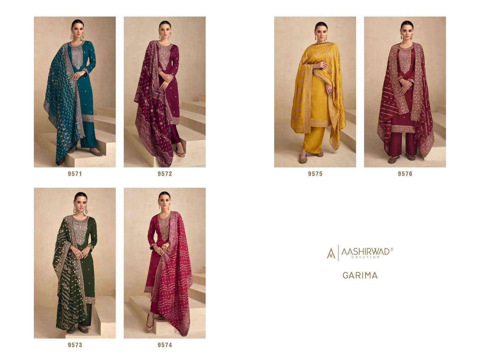 aashirwad garima 9571-9576 premium silk latest design salwar kameez