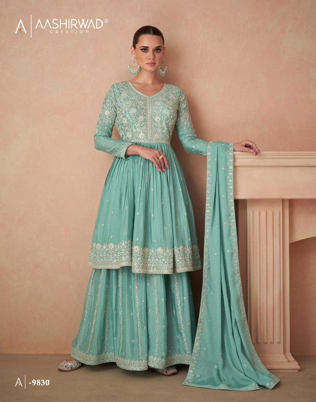 AASHIRWAD CREATION PRESENT NEW FREE SIZE STITCHED CATLOG ➡️AAHANA ⬅️ TOP-PREMIUM CHINNON SILK. (Free size stitch ) RATE -2500 NOTE - M L XL XXL RATE 2700 (ON ORDER) |