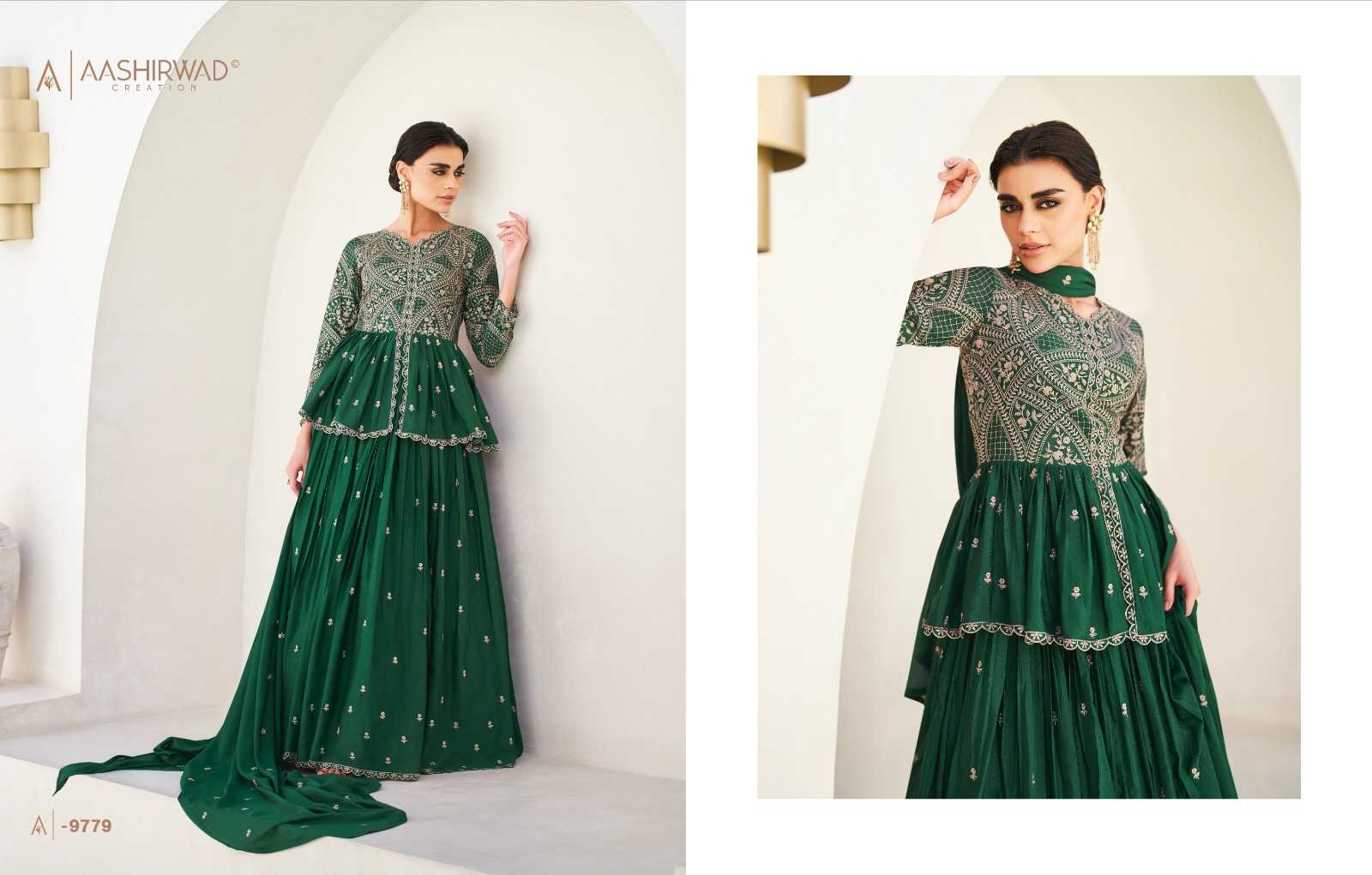 AASHIRWAD CREATION ➡NAAZ ⬅ TOP-PREMIUM CHINNON SILK. (Free size stitch ) Price - 2600 NOTE : M,L,XL,XXL RATE :2800/- (ON ORDER) |