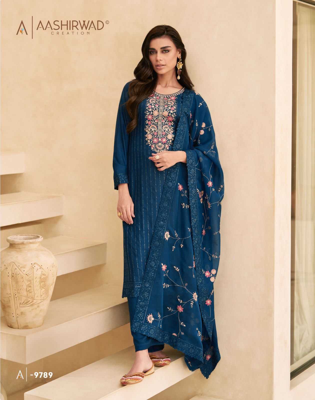 Aashirwad Creation Presents Latest Collection Launched on 30-05-2024. Presenting Beautiful collection of 5 PCS with Unstitched .