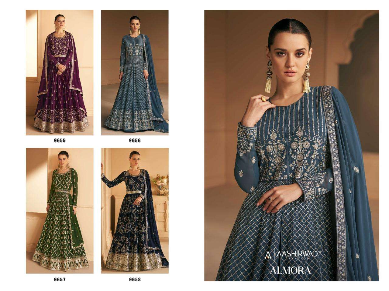AASHIRWAD CREATION ➡️ALMORA(4 pcs ) ⬅️ TOP-REAL GEORGETTE (free size stitch ) Price - 2499 |