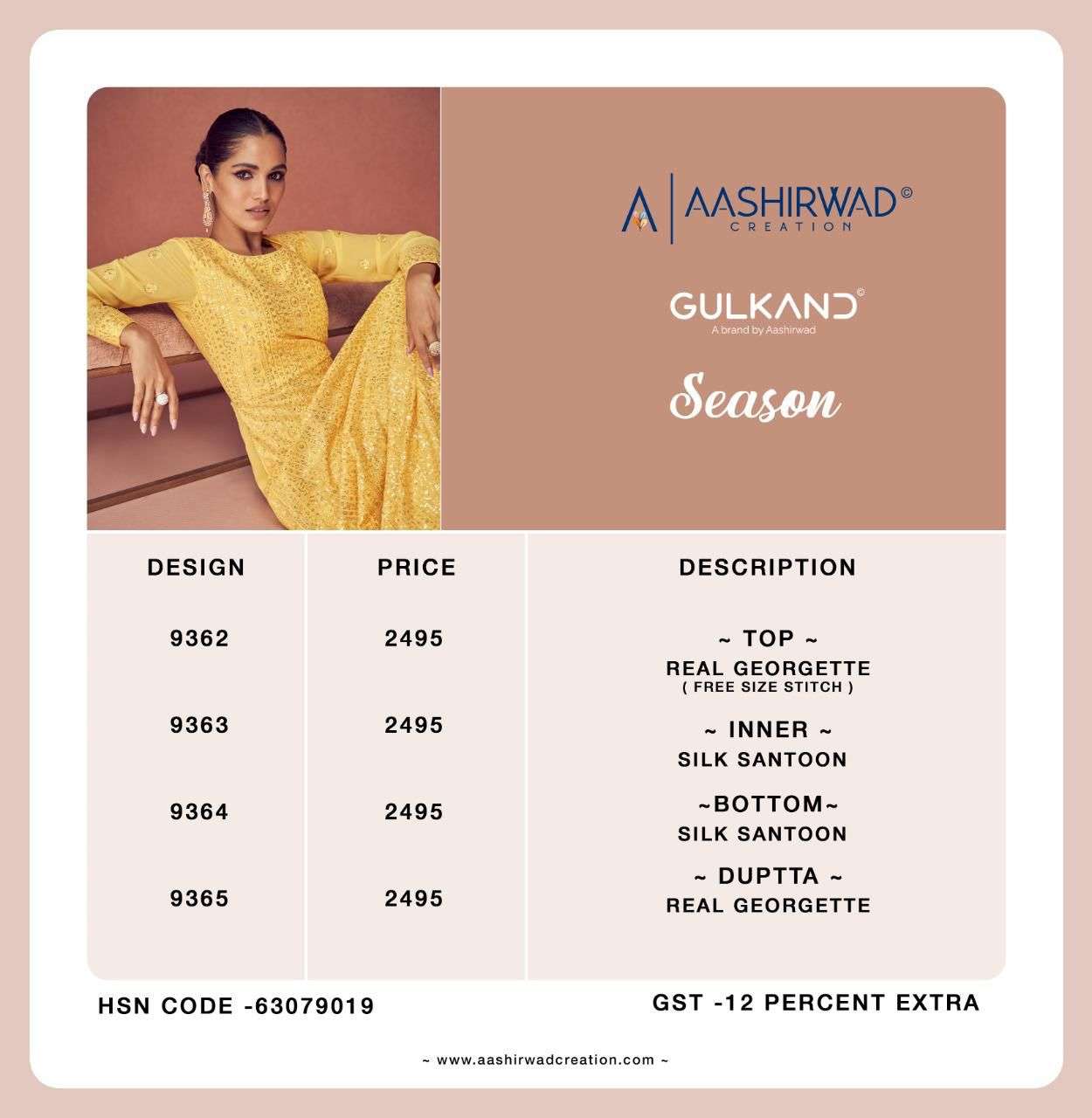 AASHIRWAD CREATION PRESENT NEW FREE SIZE STITCH COLLECTION (XL SIZE ) ➡️SEASON⬅️ TOP-REAL GEORGETTE (free size stitch ) *_Price - 2495/- |