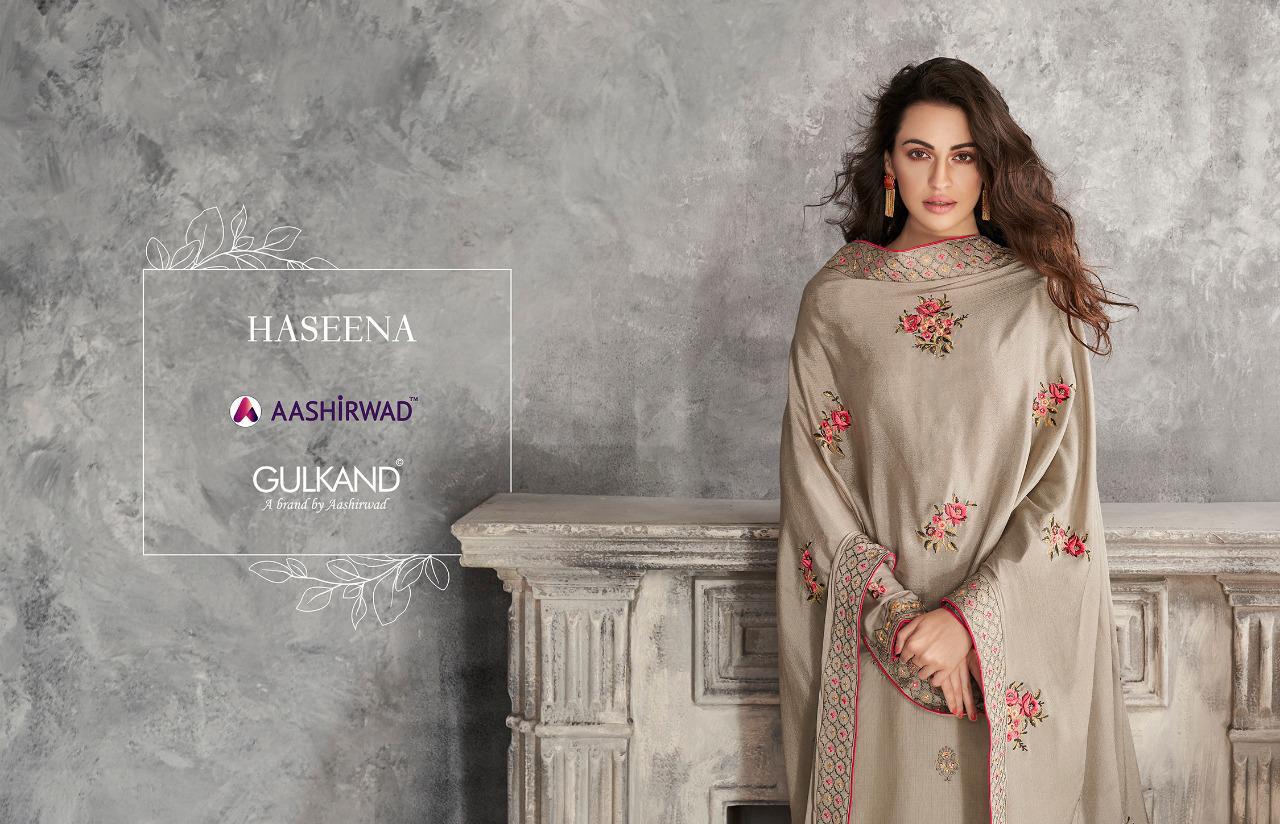 Aashirwad Launch Haseena Premium Tussar Silk With Self Embroidery Work Suit Supplier