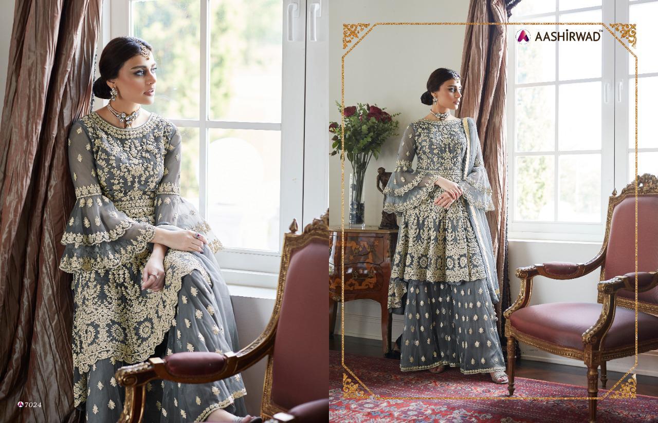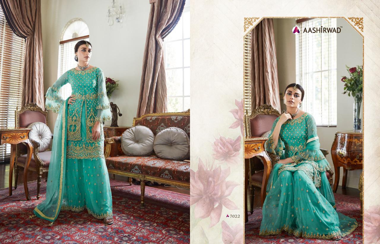 Aashirwad Premium Sharara Butterfly Net Embroidery Plazo Style Salwar Kameez