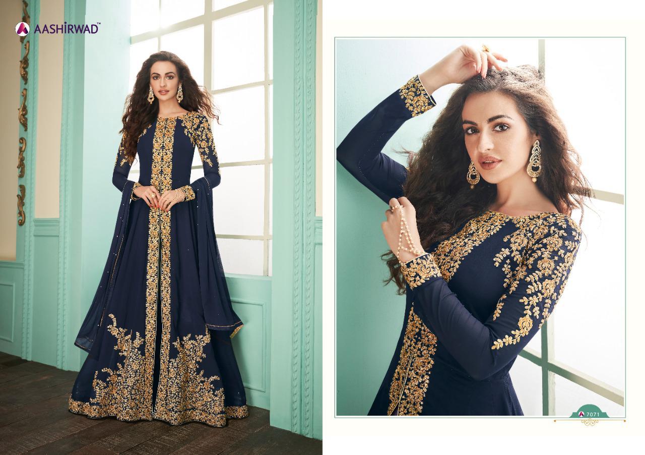 Aashirwad Present Almirah Gold Real Georgette Long Party Wear Designer Salwar Suit