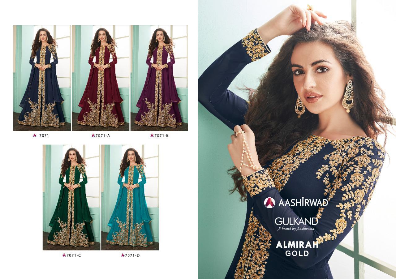 SURAT AASHIRWAD PRESENT NEW CATLOG ALMIRAH GOLD (5 ) Top - Real georgette Inner - Dull Santoon Bottom- Dull Santoon Duptta - Chinnon. Price -2095 per Pcs . Gst -12 percent extra Dispatching in 7 days !!!!! Team AASHIRWAD |