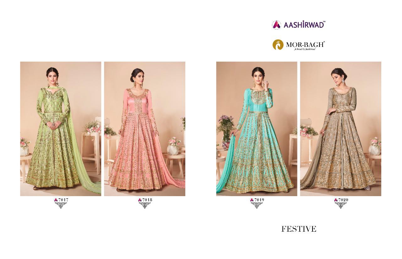 Aashirwad Present Festive Mulberry Silk Embroidery Anarkali Long Suit Collection