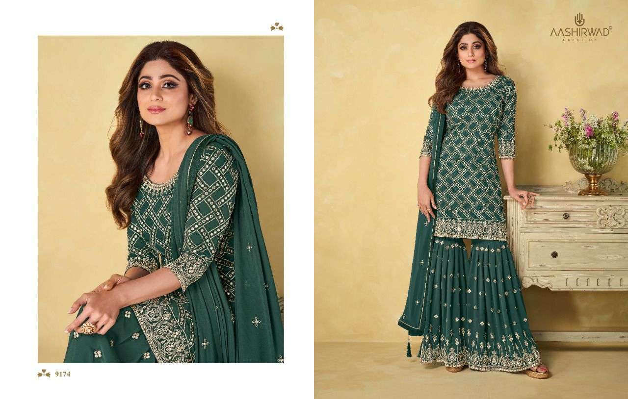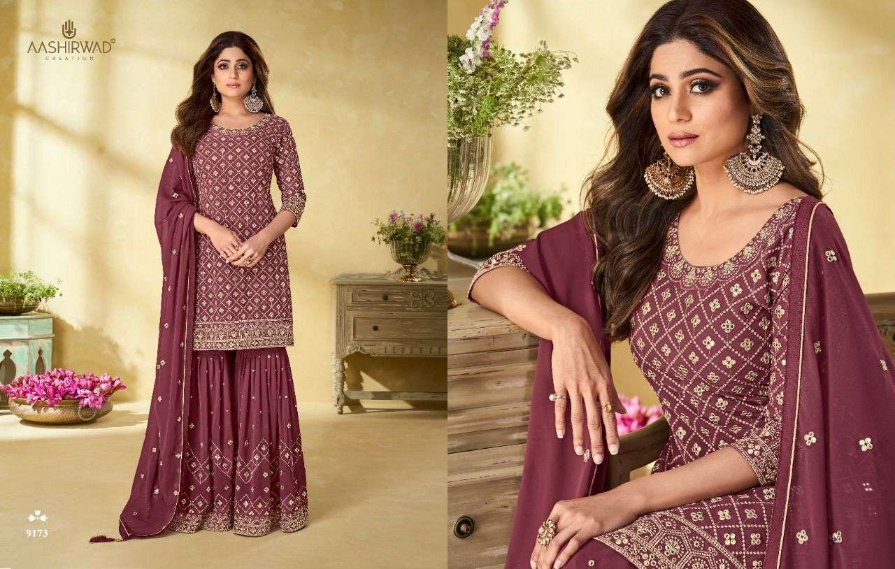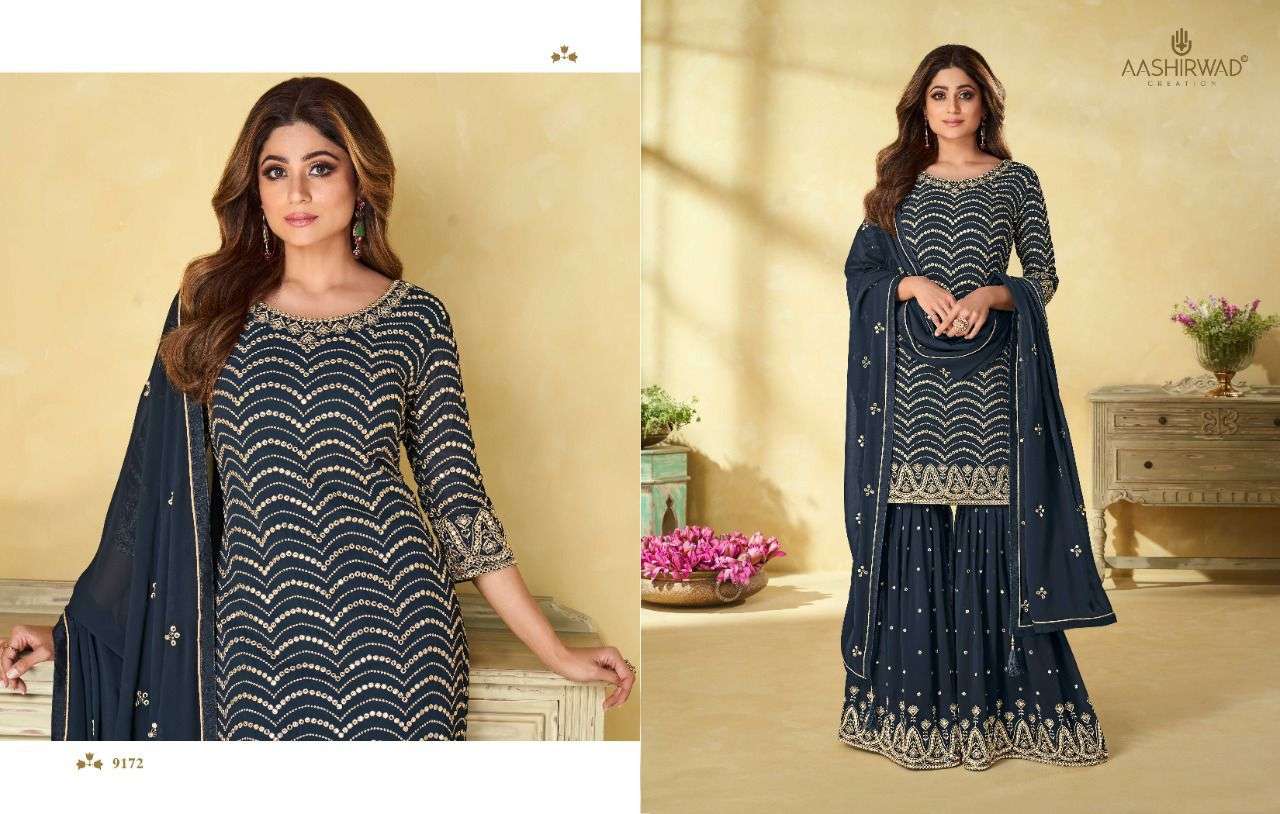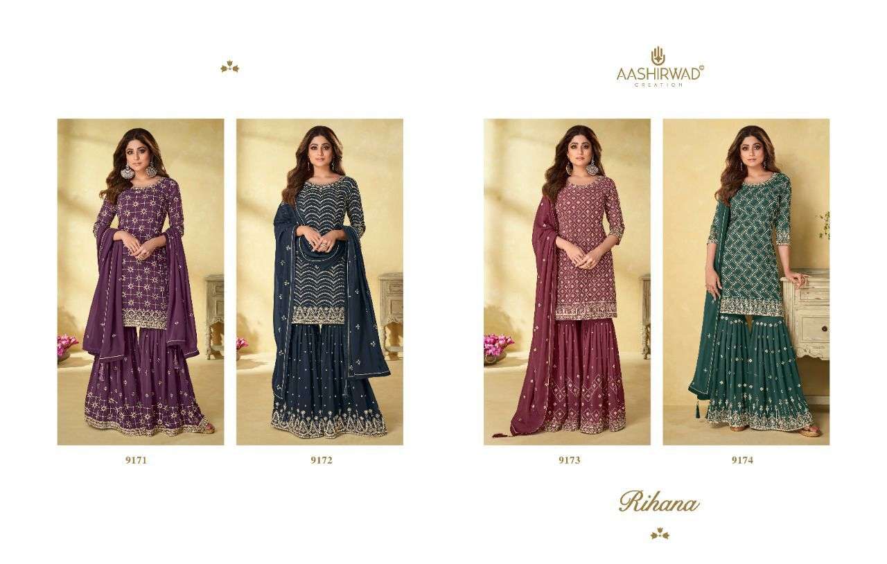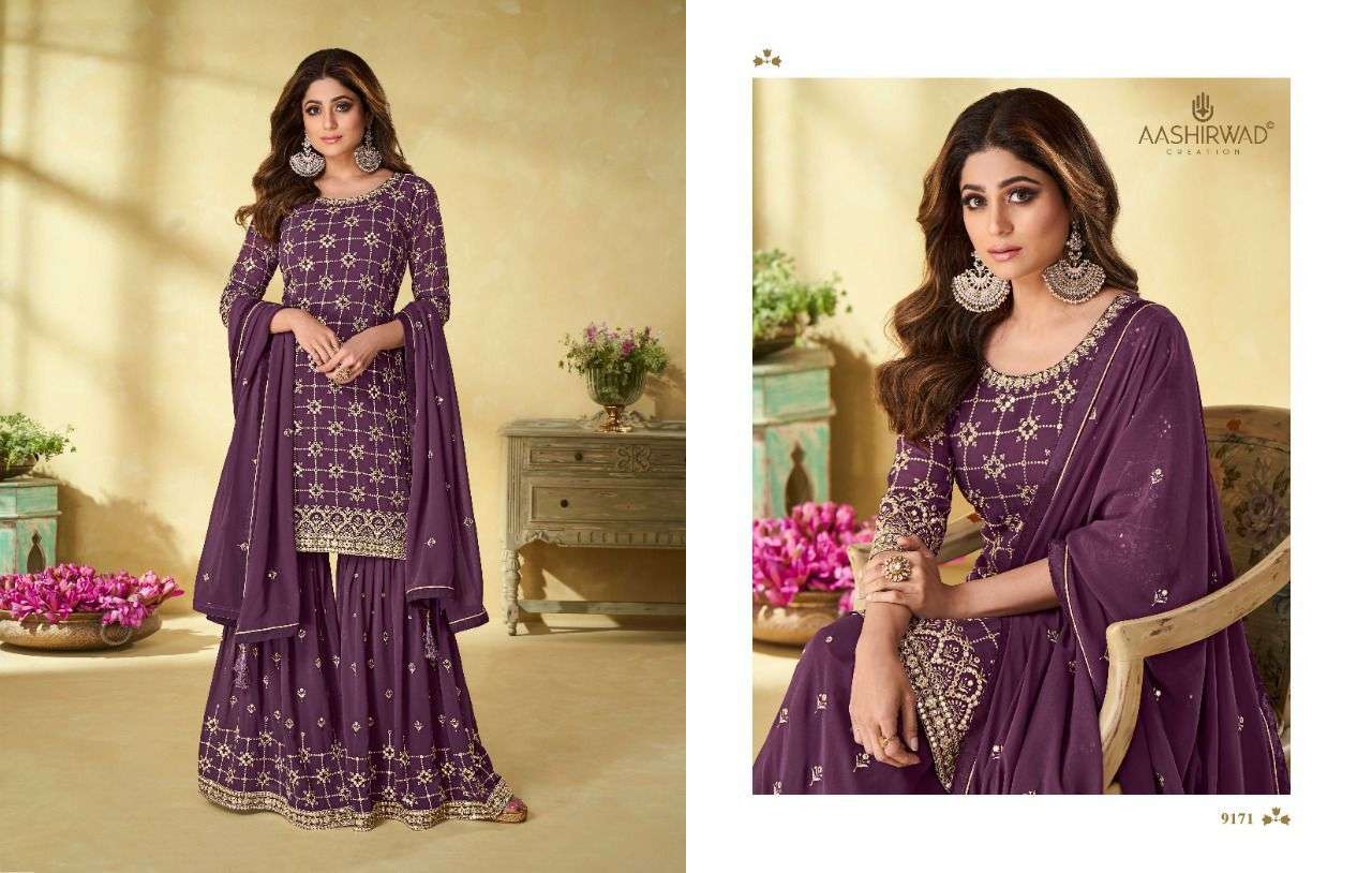aashirwad riha9171-9174 series readymade plazzo style heavy dresses