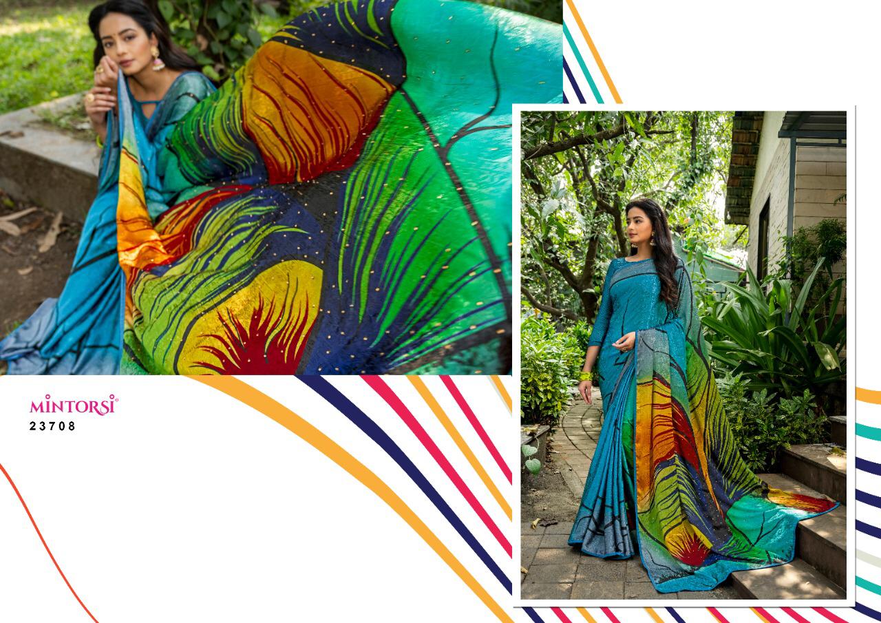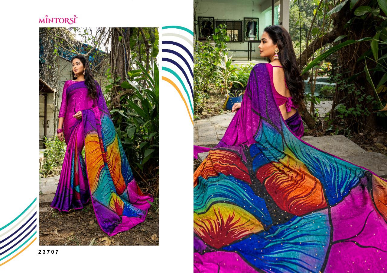 Aastha Vol 2 By Mintorsi Silk Crape Hand Printed Designer Saree Wholesaler