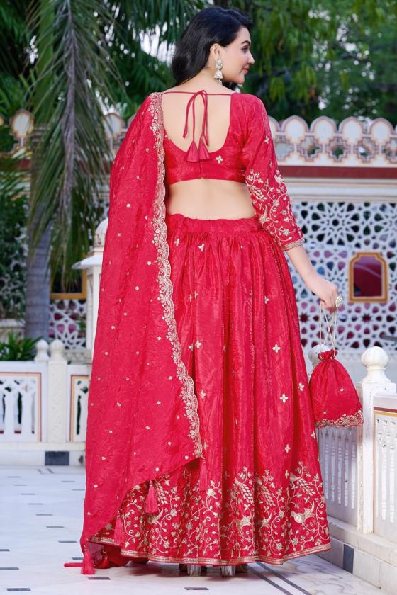 LUSTROUS GOLD CRUSH LEHENGA WITH ALL-OVER SEQUIN & THREAD EMBROIDERY. PC1023 PINK LEHENGA (STITCHED) BLOUSE (STICH) DUPATTA BATWA : GOLD CRUSH WITH WORK : ZARI WEAVING WORK AND BOTH SIDE TASSELS PACKAGE CONTAIN : LEHENGA, BLOUSE, DUPATTA, BATWA, DRAWSTRING, TASSELS WEIGHT : 1.500 KG RATE : 1550/- +gst |